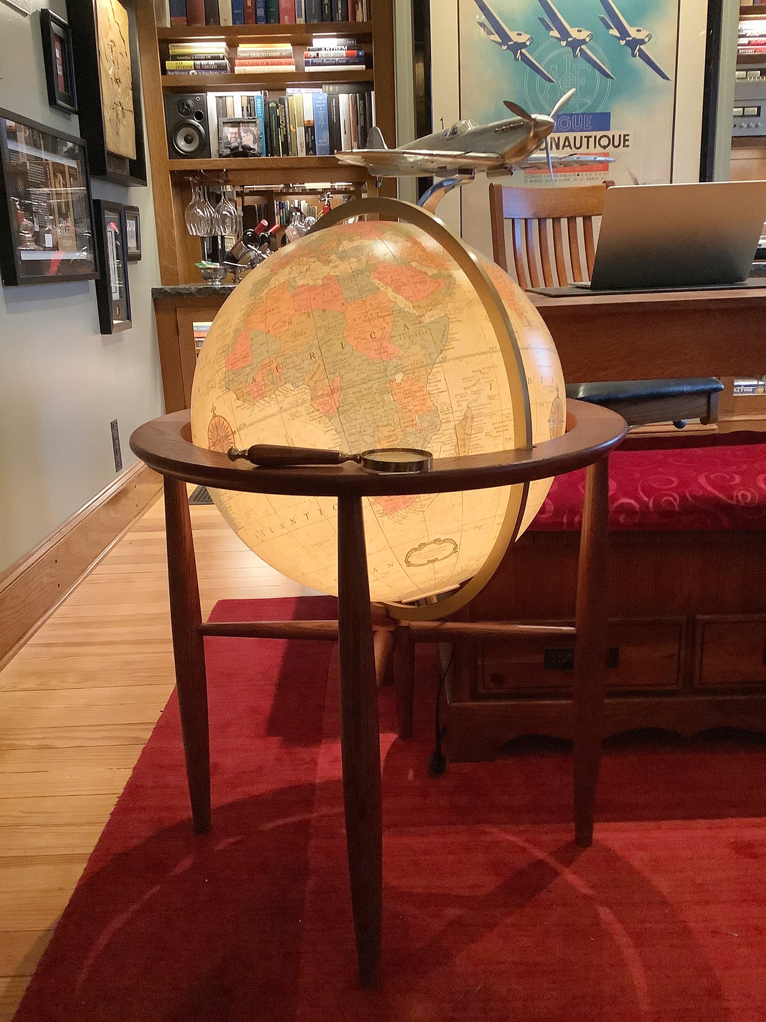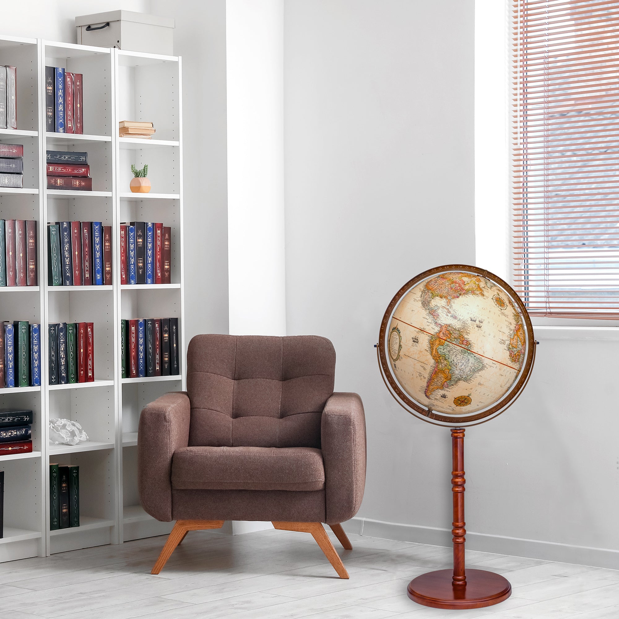 Finley 20" Diameter Illuminated Antique Ocean Hardwood Floor Stand with Full Diecast Numbered Meridian