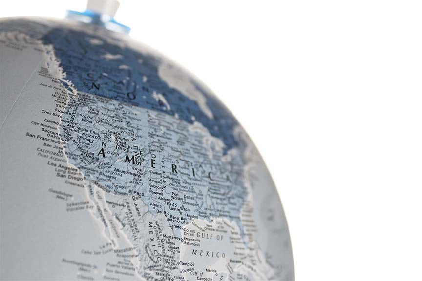 Chicago 12" Diameter Designer Antique Ocean Globe with Two Tiered Natural Wood Base and Numbered Semi-Meridian