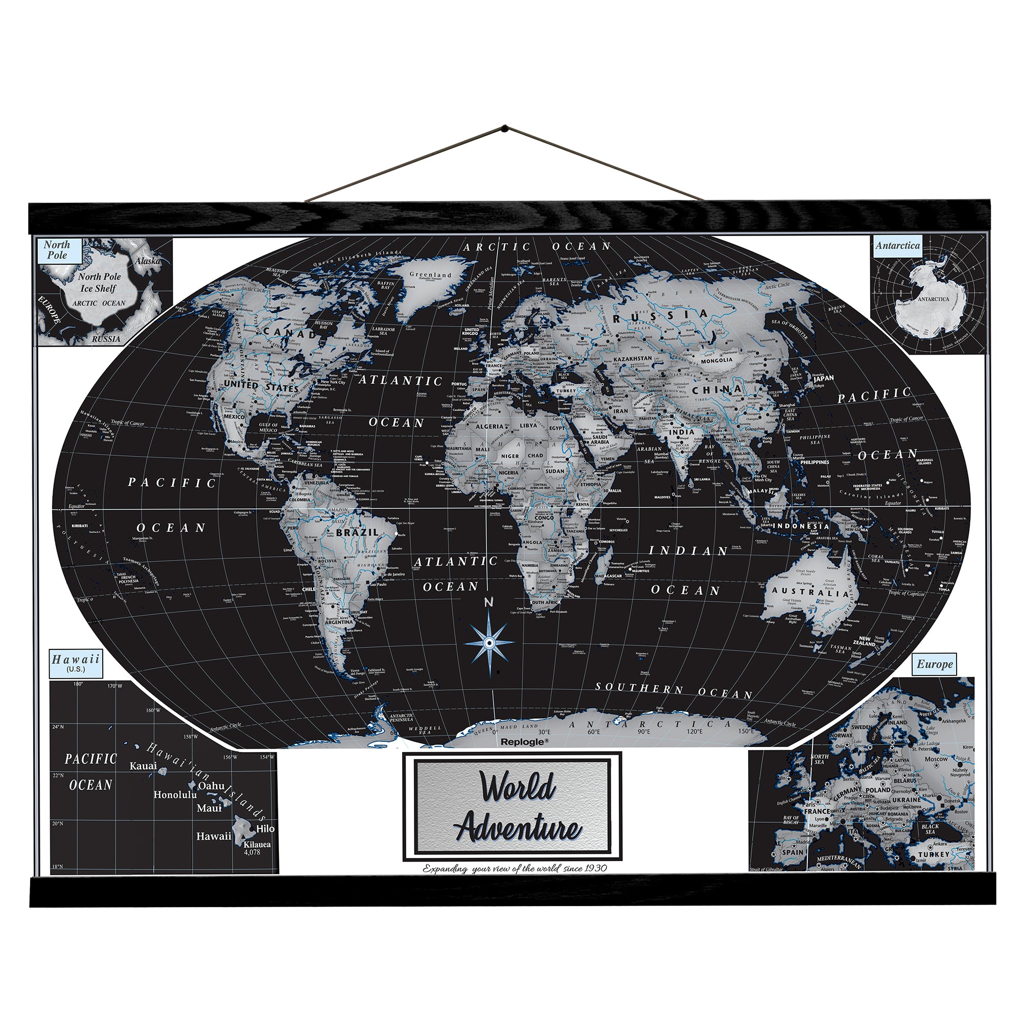 Canvas Contemporary World Wall Map Black Ocean 42" x 30"