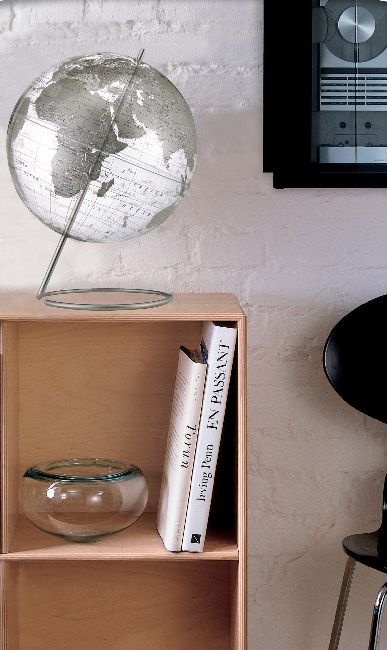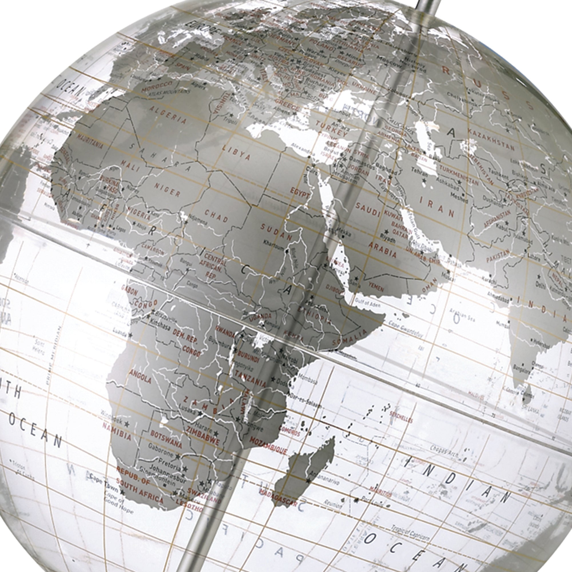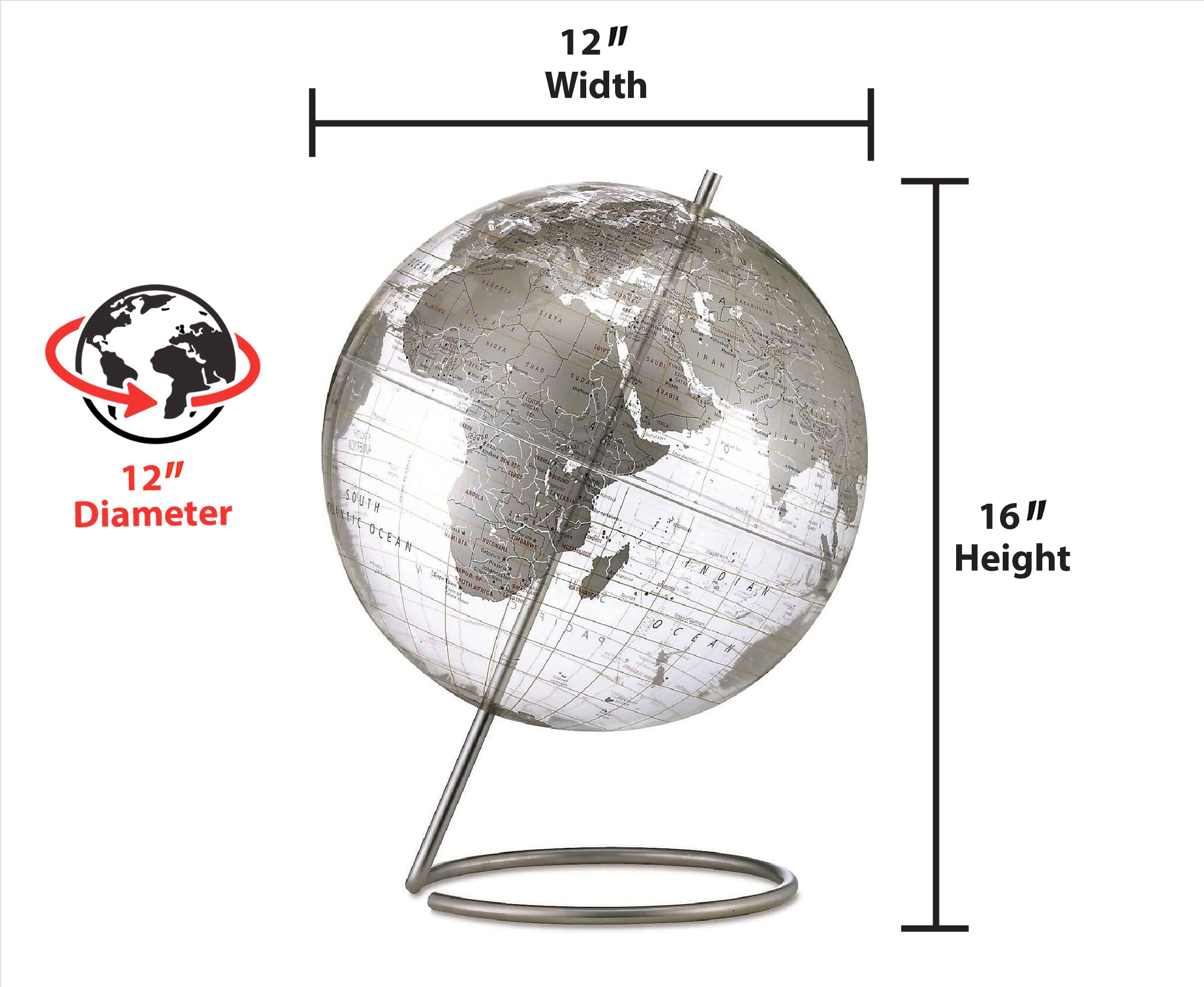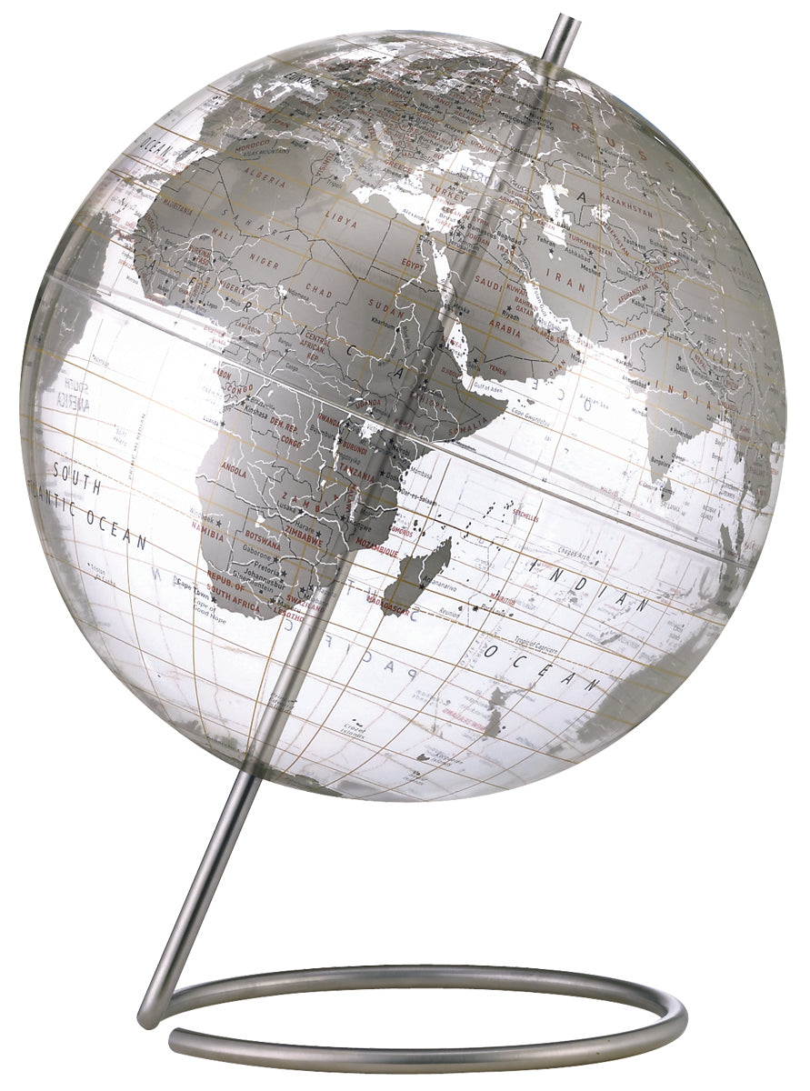 Crystal Marquise 12" Diameter Clear Ocean Globe with Stainless Steel Base and Inclination Bracket for Unobstructed Viewing