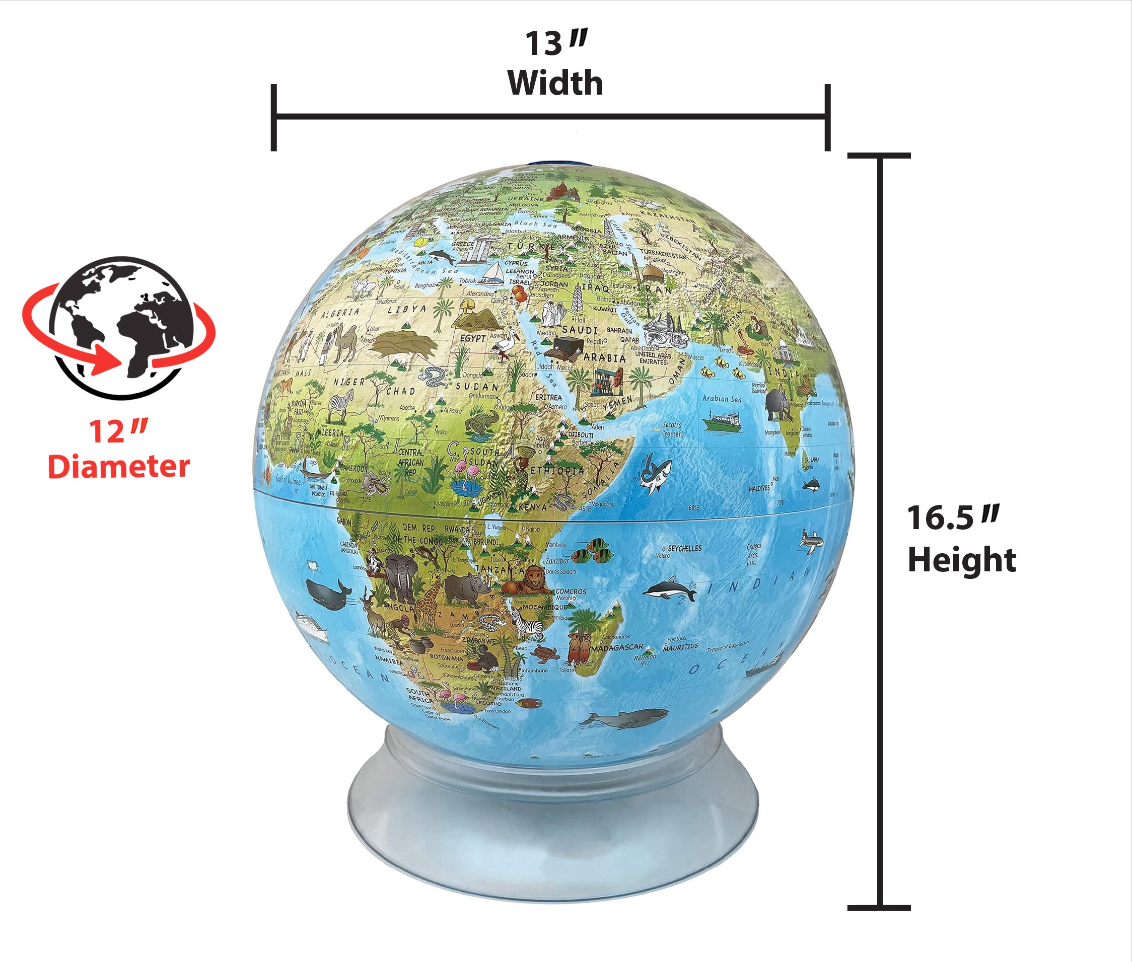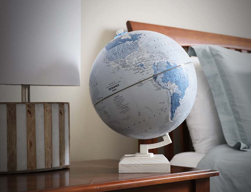 Day/Night Illuminated 12" Diameter Blue Ocean Globe with Free Mount Base
