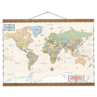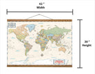 - Detailed Map Shows Countries, Capitals, Cities, Political Borders, and Oceans              - Handcrafted Wood Scroll frame and Made in the USA