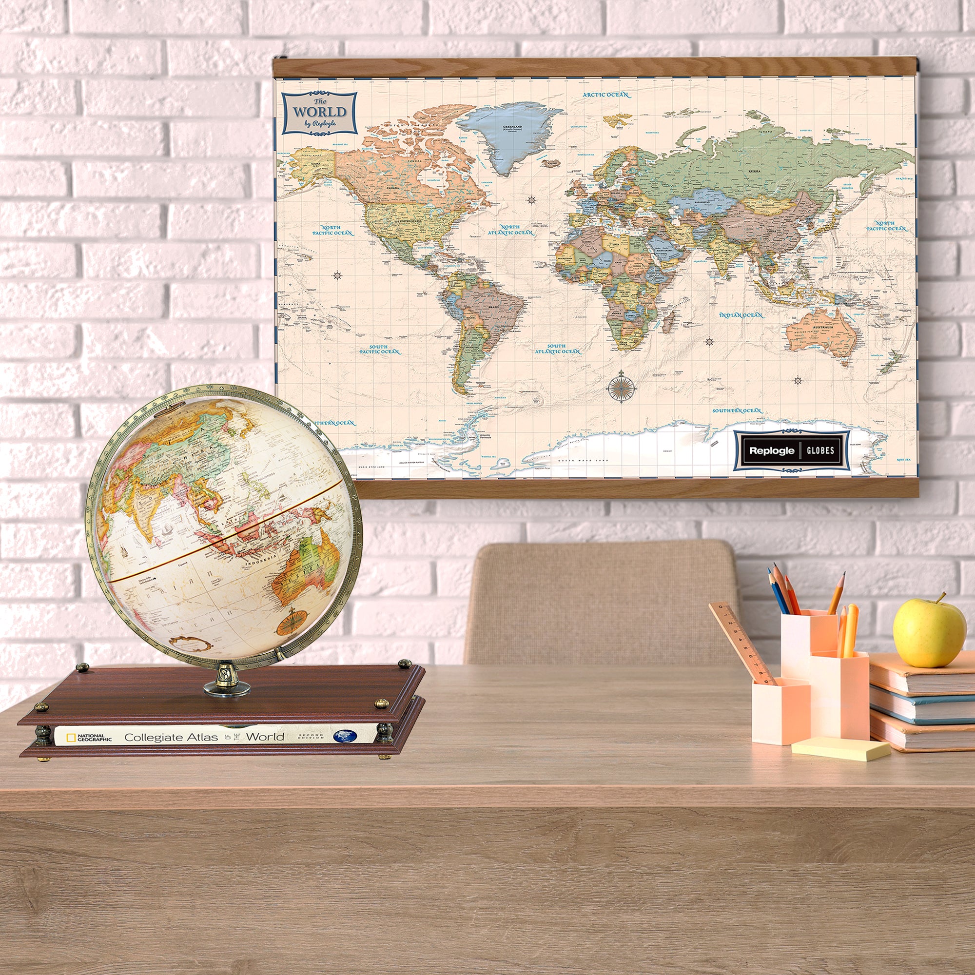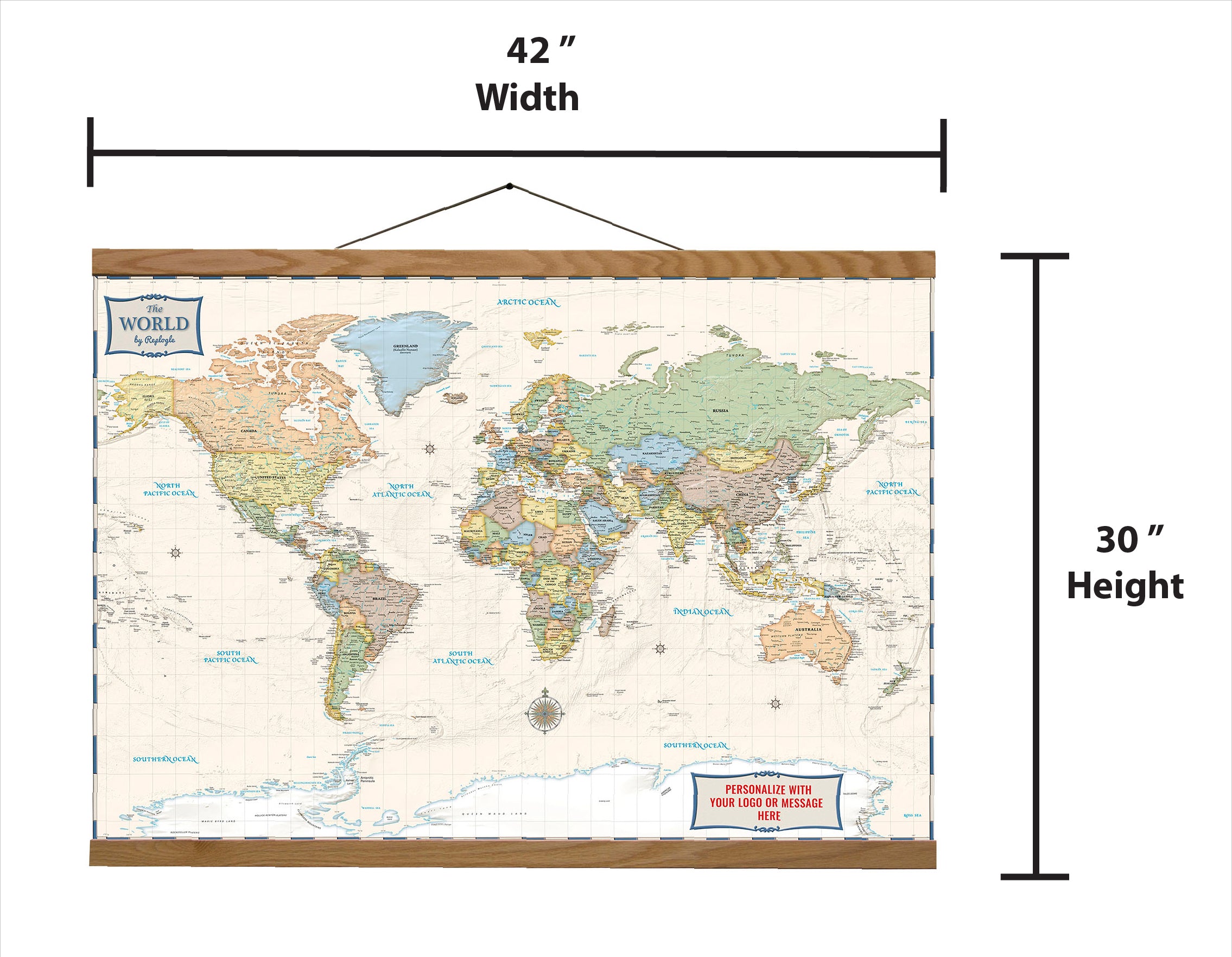 The World Antique is your canvas, literally!  Our canvas maps are ready to hang and feature a distinct scroll-like frame made from the same handcrafted quality wood used in our globe bases.  Inspire a lifetime of wanderlust with an heirloom quality canvas map by Replogle.  All canvas maps are produced with superior print quality by our in-house printers and use a waterproof coated canvas material to ensure that our prints stand out with brilliant clarity and vivid colors.