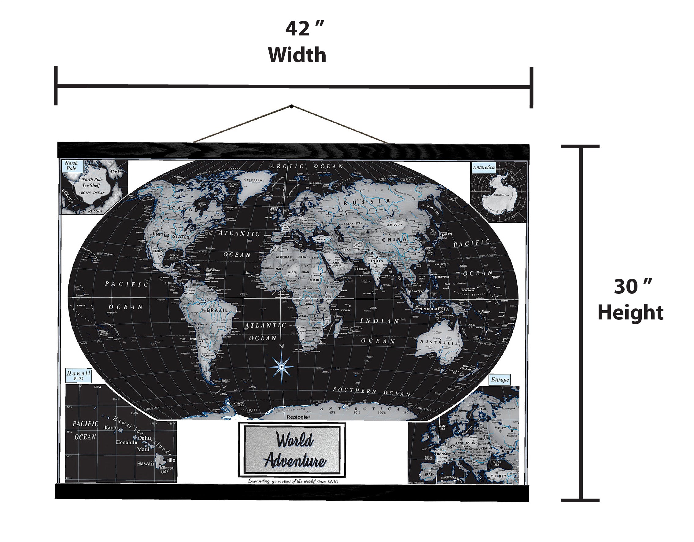The World Adventure is your canvas, literally! Our canvas maps are ready to hang and feature a distinct scroll-like frame made from the same handcrafted quality wood used in our globe bases. Inspire a lifetime of wanderlust with an heirloom quality canvas map by Replogle. All canvas maps are produced with superior print quality by our in-house printers and use a waterproof coated canvas material to ensure that our prints stand out with brilliant clarity and vivid colors.
