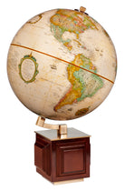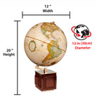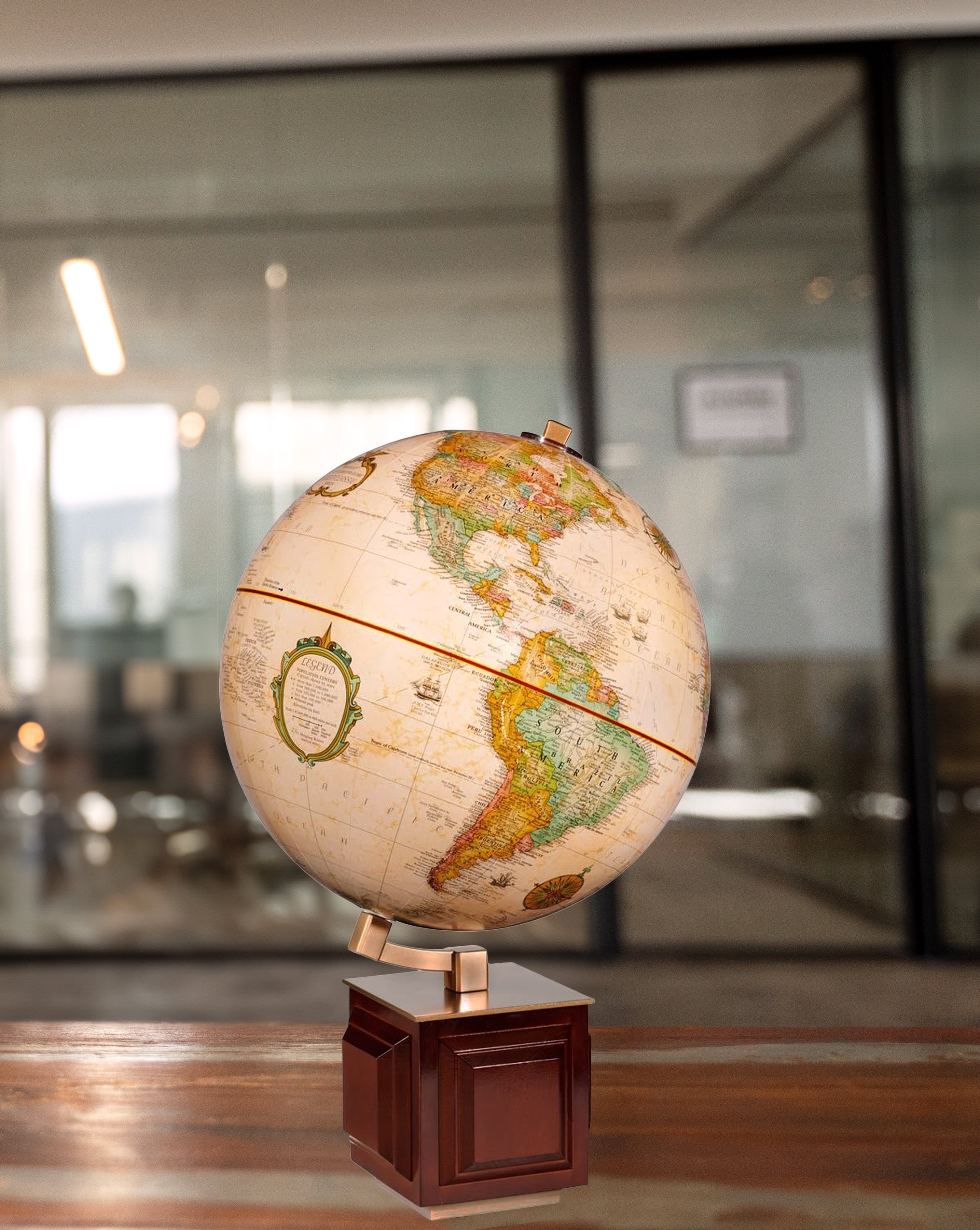 Frank Lloyd Wright Four Square 12" Diameter Antique Ocean Globe with Solid Hardwood Base and Inclination Bracket For Unobstructed Viewing