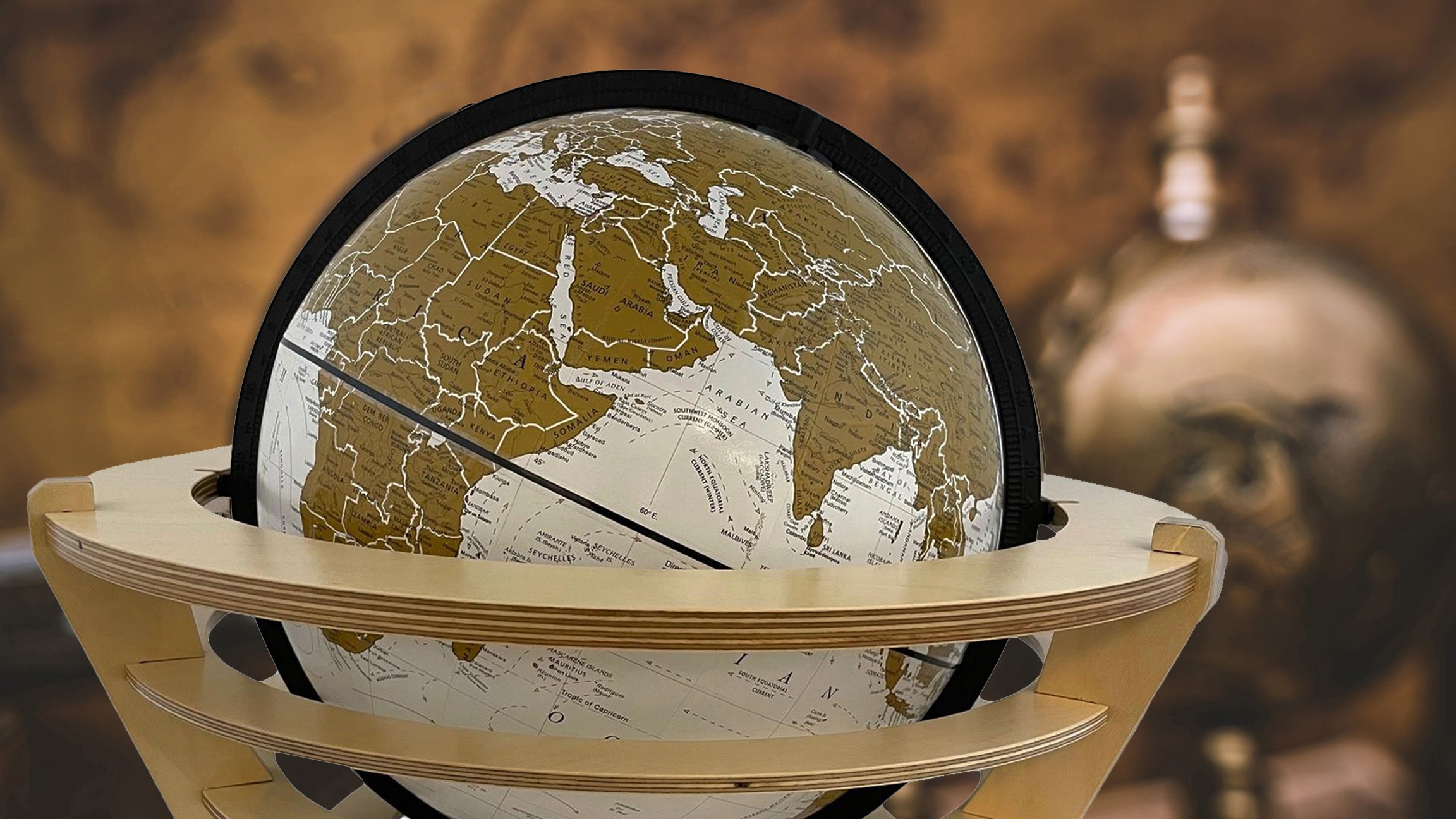 - Natural Wood Base with a numbered Die-Cast Meridian