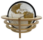 Frank Lloyd Wright Schwartz 12" Diameter White Ocean and Brown Land Mass Globe with a Natural Wood Base and Numbered Die-Cast Full Meridian