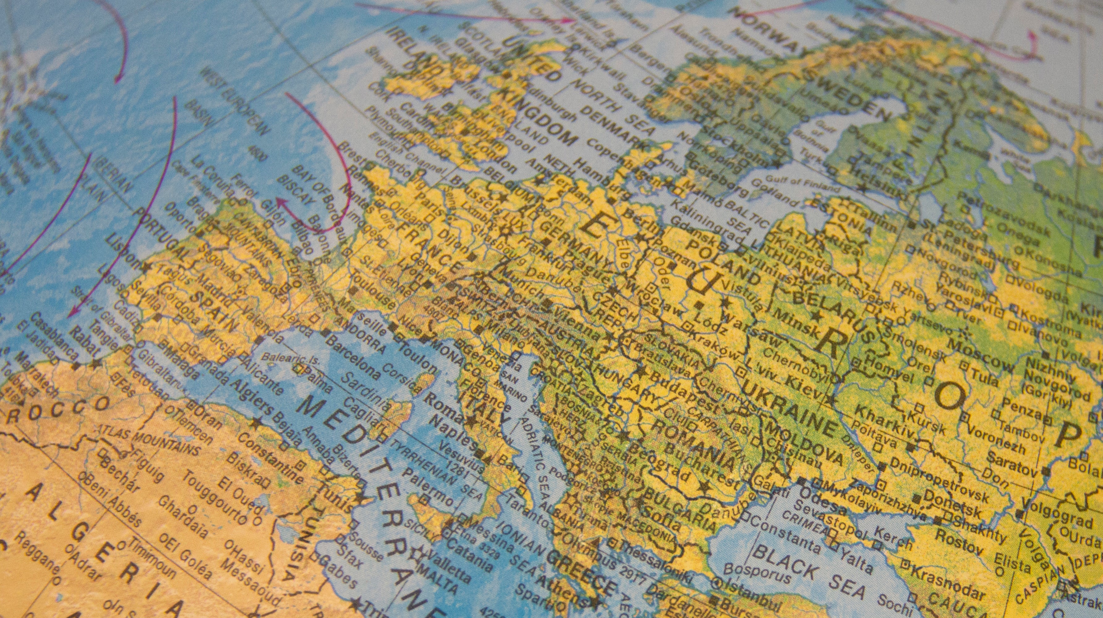 The raised relief embossing reveals the earth's main mountain ranges in a three dimensional way.