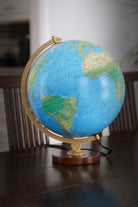 The Livingston 12" Illuminated Raised Relief Desktop Blue Ocean World Globe features a beautiful, up to date two-way map.