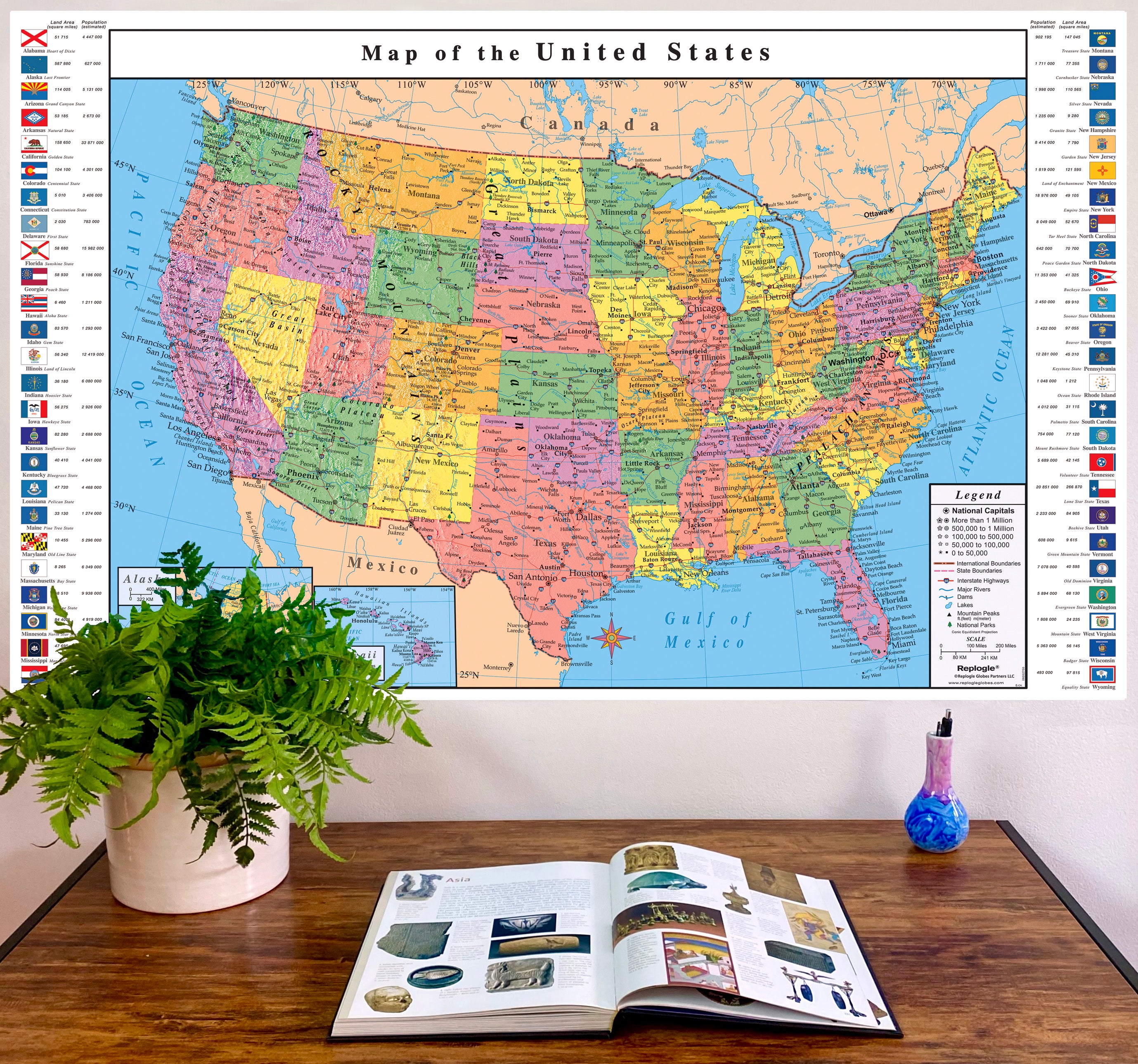 Replogle USA Wall Map with State Flags 49" x 33"