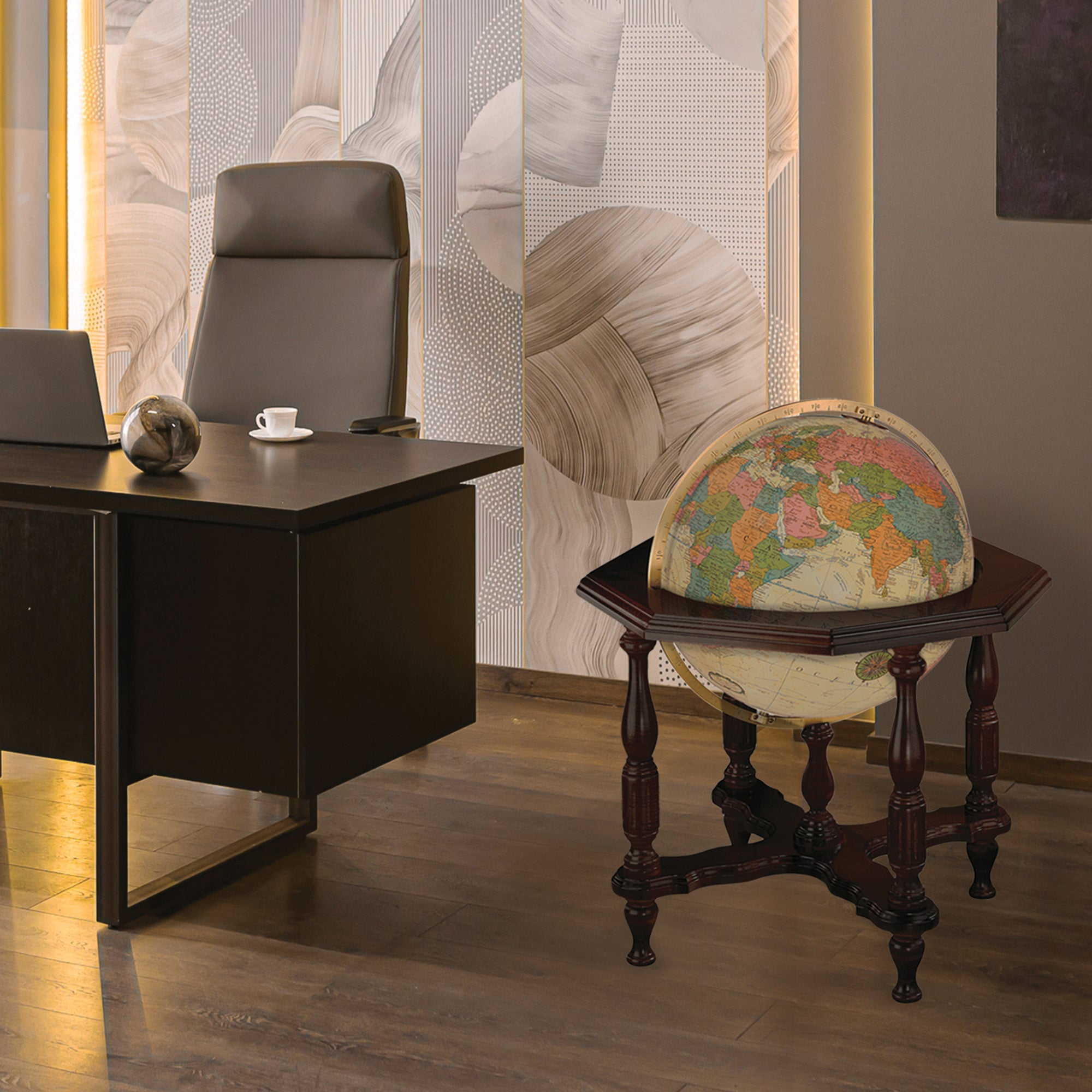 Statesman 20" Diameter Illuminated Globe, USA Cartography with Solid Hardwood Walnut Finished Stand. The Statesman features a hand-applied, hand-cut map. This 20”/50 cm diameter illuminated globe is mounted on a striking hardwood base. Classic design details and a solid brass engraved meridian make this a bold addition to any environment. Additional wood finishes available upon request.