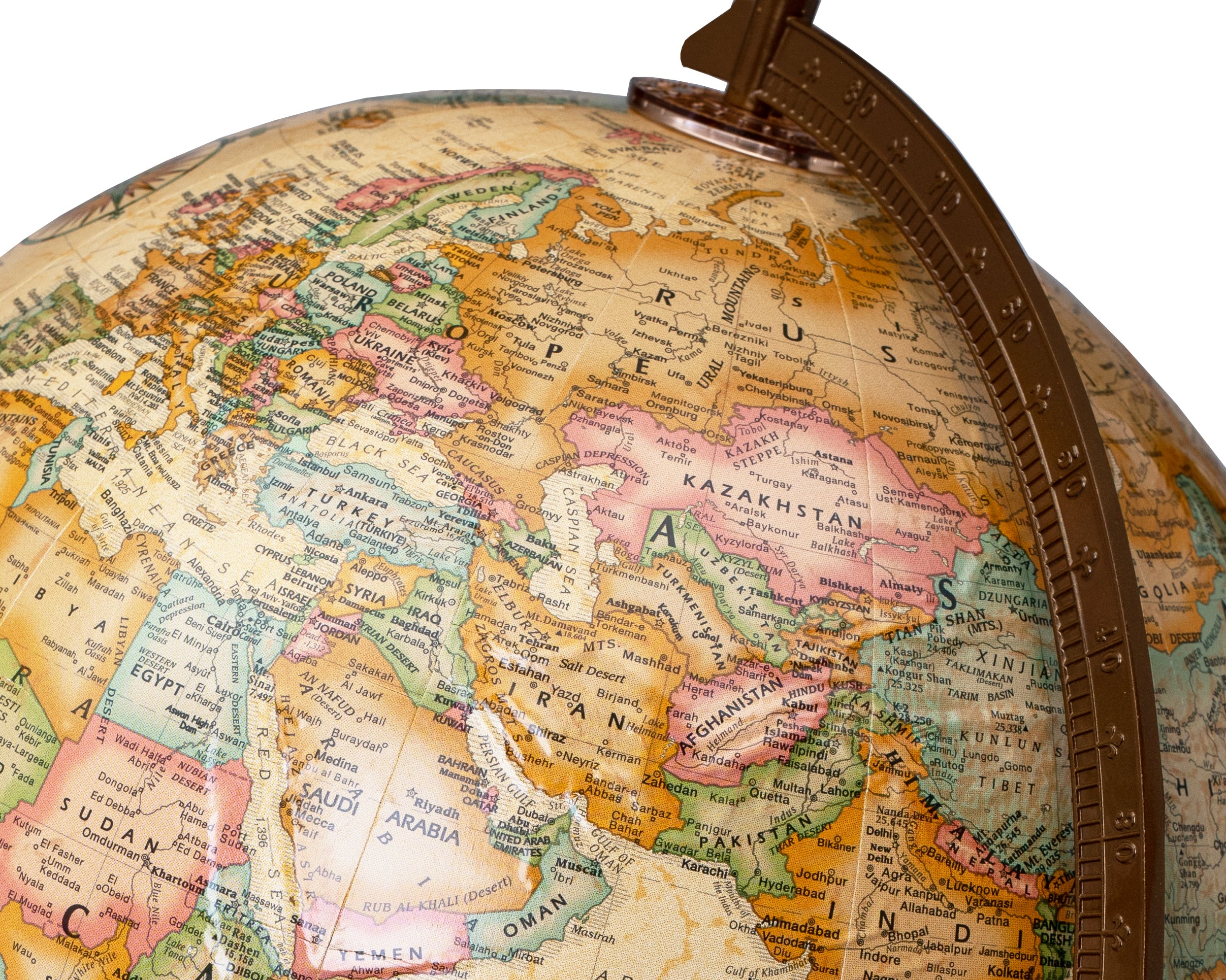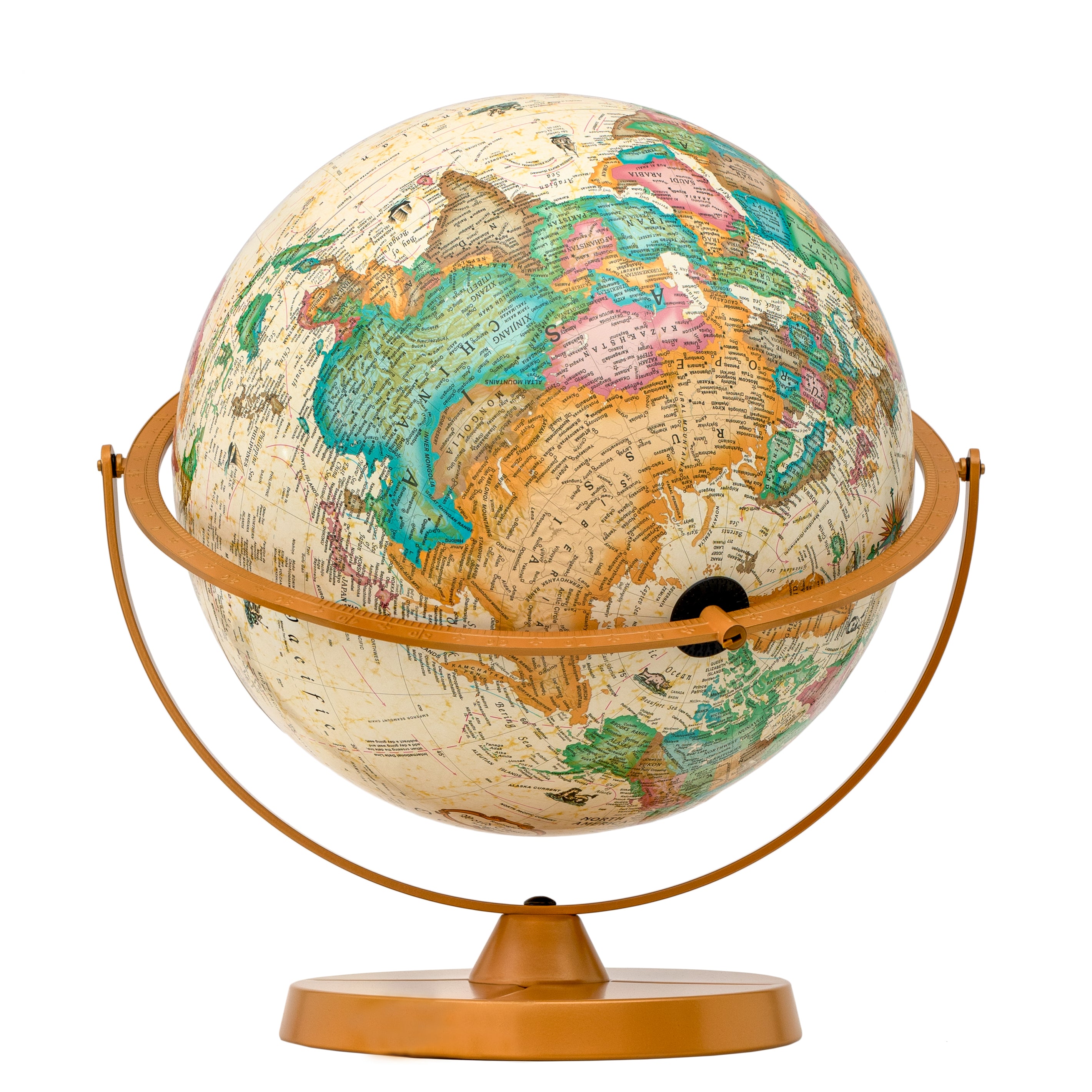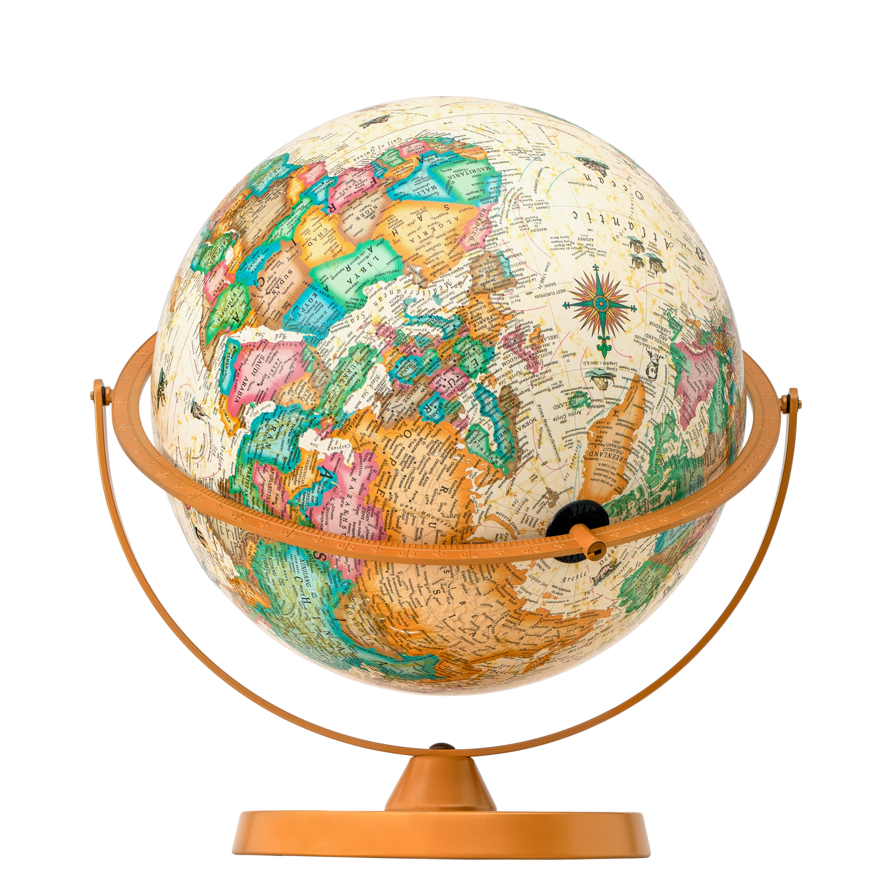 Easy To Assemble World Classis Globe 12" Diameter Antique Ocean Globe with Wood Base and Numbered Semi-Meridian