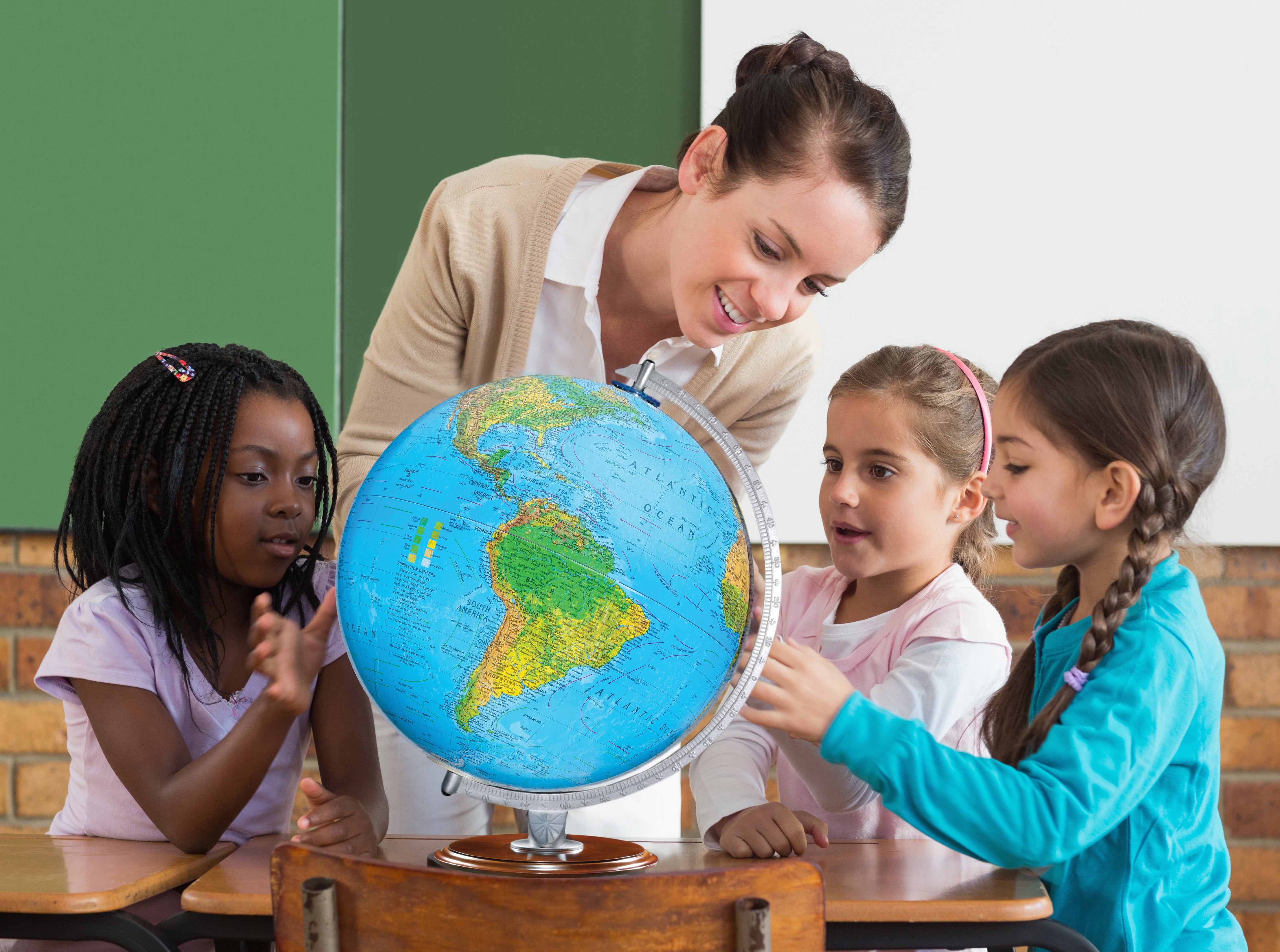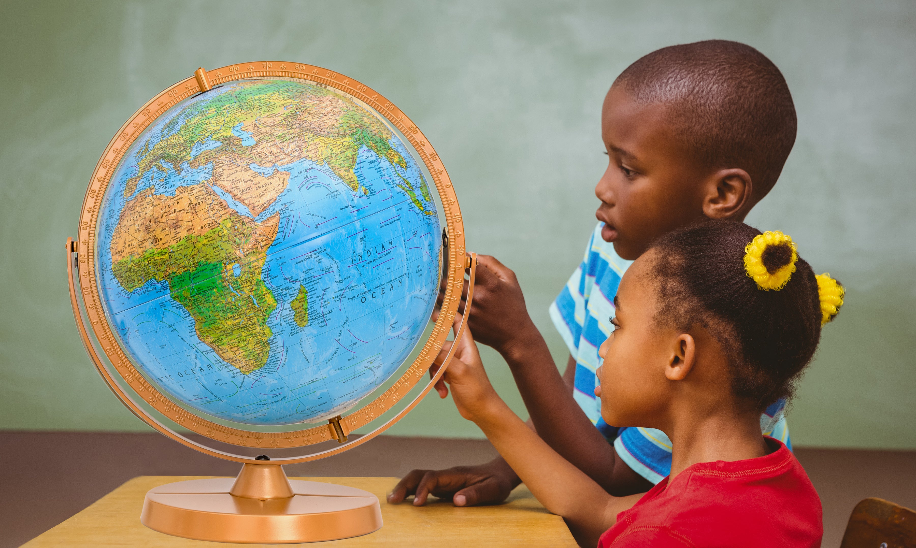Gulf of America- Student Globe 12" Diameter Blue Ocean Globe with Sturdy Wood Base and Numbered Semi-Meridian