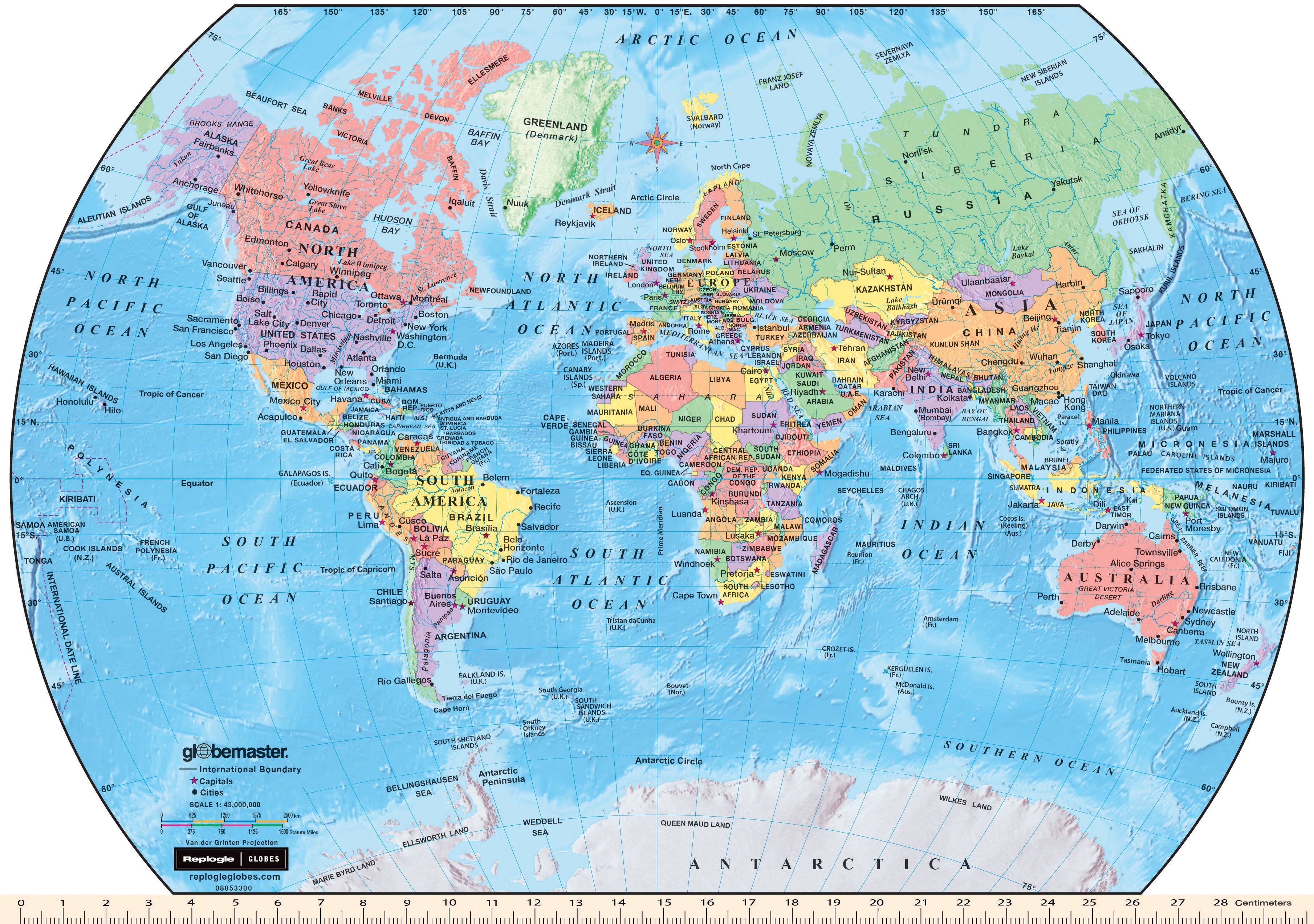 Geographer 12" Diameter Blue Ocean Write-On, Wipe Off Blue Ocean Globe with Metal Base and Numbered Semi Meridian