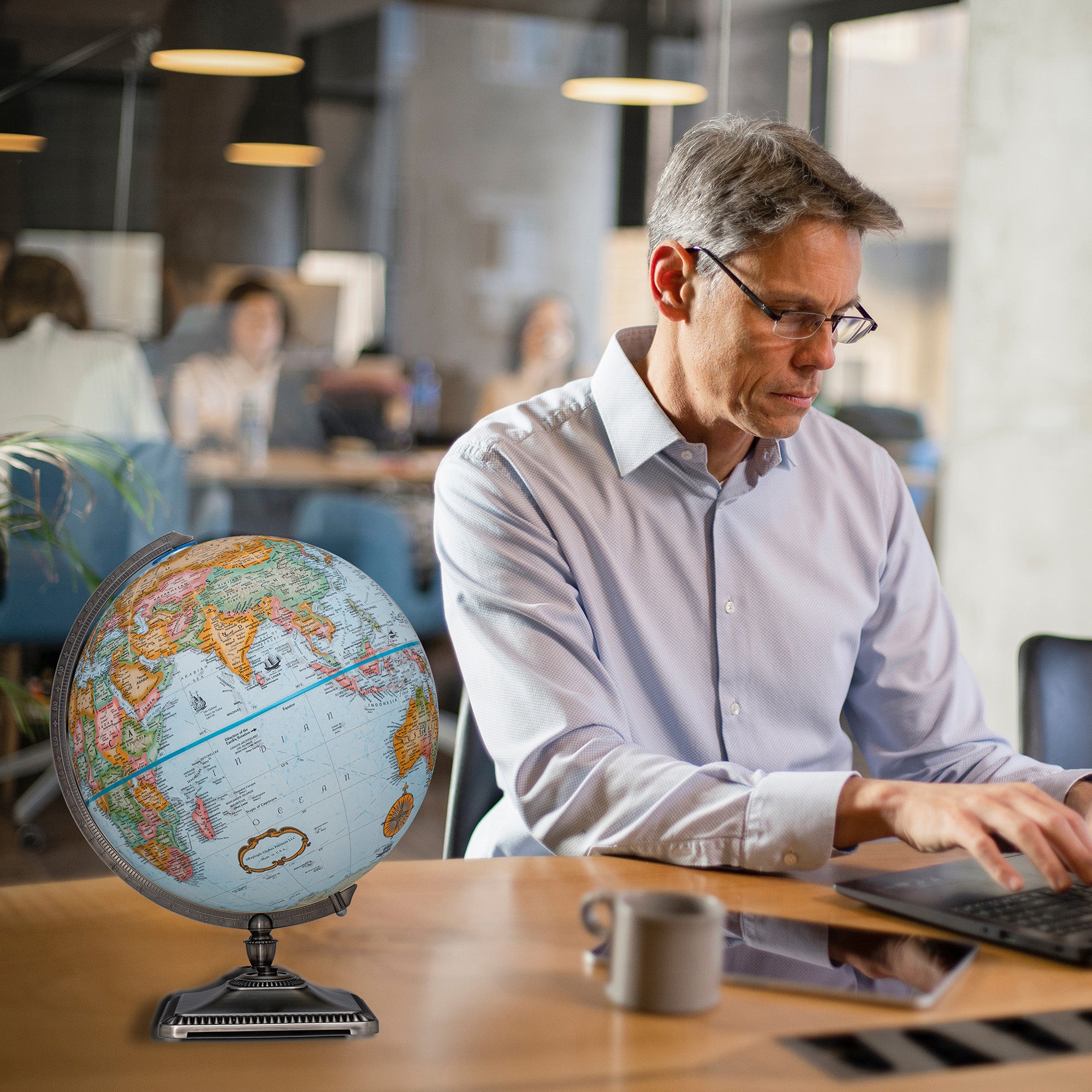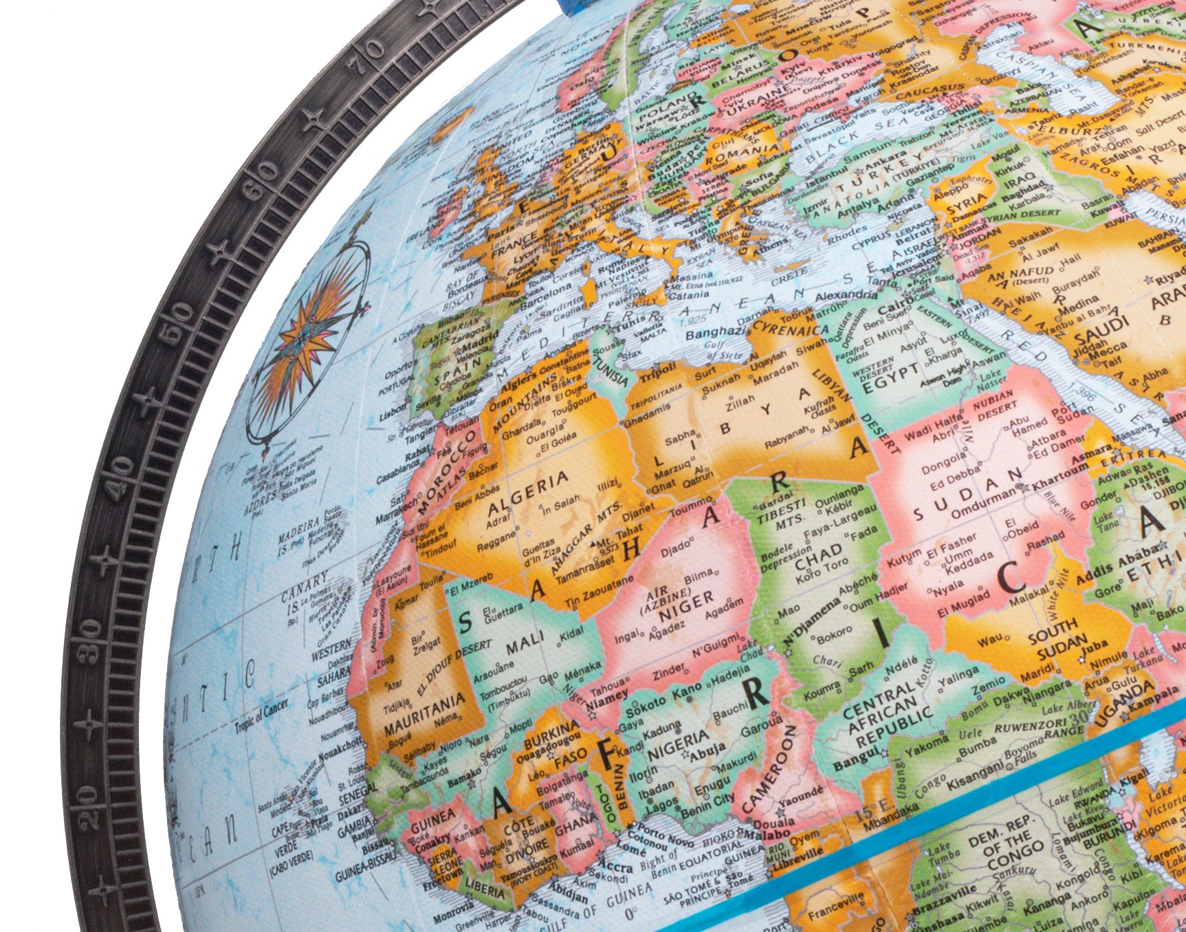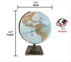 Zurich 12" Diameter Globe, USA Cartography with Raised Mountain Relief and Sturdy Diecast Base.. With its combination of classic styling and contemporary finish, the Athens Canvas 12" Antique Ocean World Globe is a breath taking globe. This new  and unique globe is made with a canvas covered globe ball.