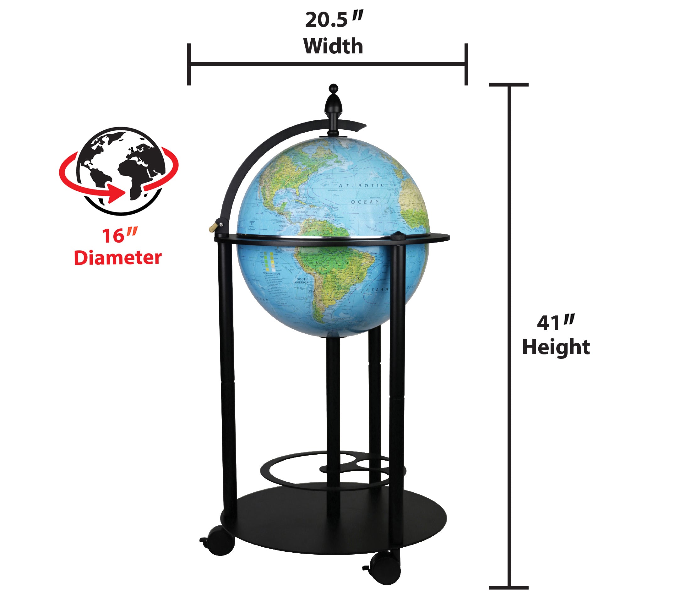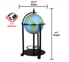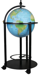 Bar Globe 16" Diameter Blue Ocean Illuminated globe with a Rechargeable LED light and Vegetational Political map with a Black Metal Base Stand