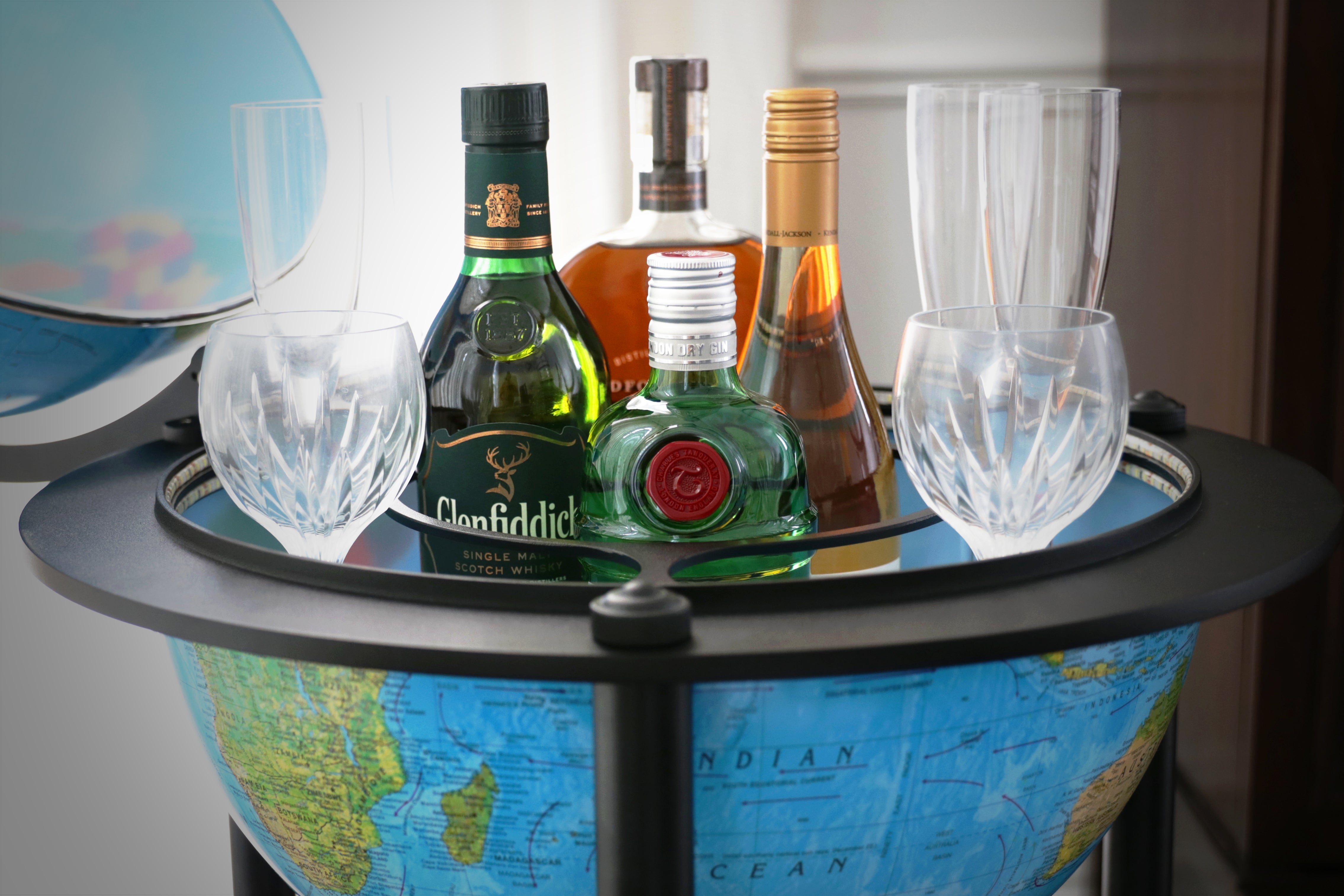 - Globe ball has a spacious drink cabinet which allows you to store a diverse number of spirit bottles and glasses