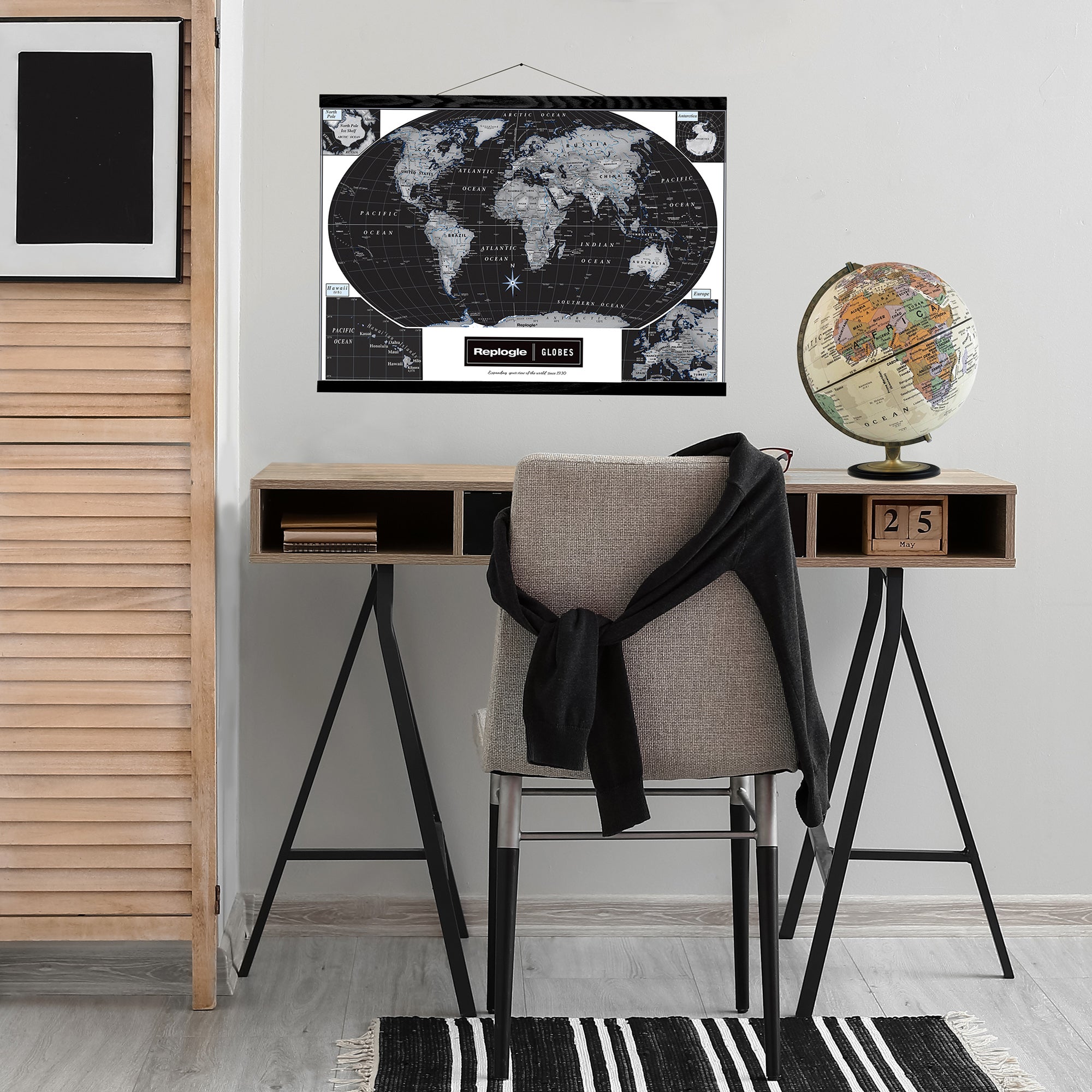 Athens 12" Diameter Globe, USA Cartography with Raised Mountain Relief and Sturdy Metal Base.. With its combination of classic styling and contemporary finish, the Athens Canvas 12" Antique Ocean World Globe is a breath taking globe. This new and unique globe is made with a canvas covered globe ball.