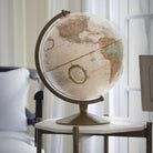 The antique globe ball also features raised relief embossing that reveals the world's main mountain ranges in a three dimensional form.