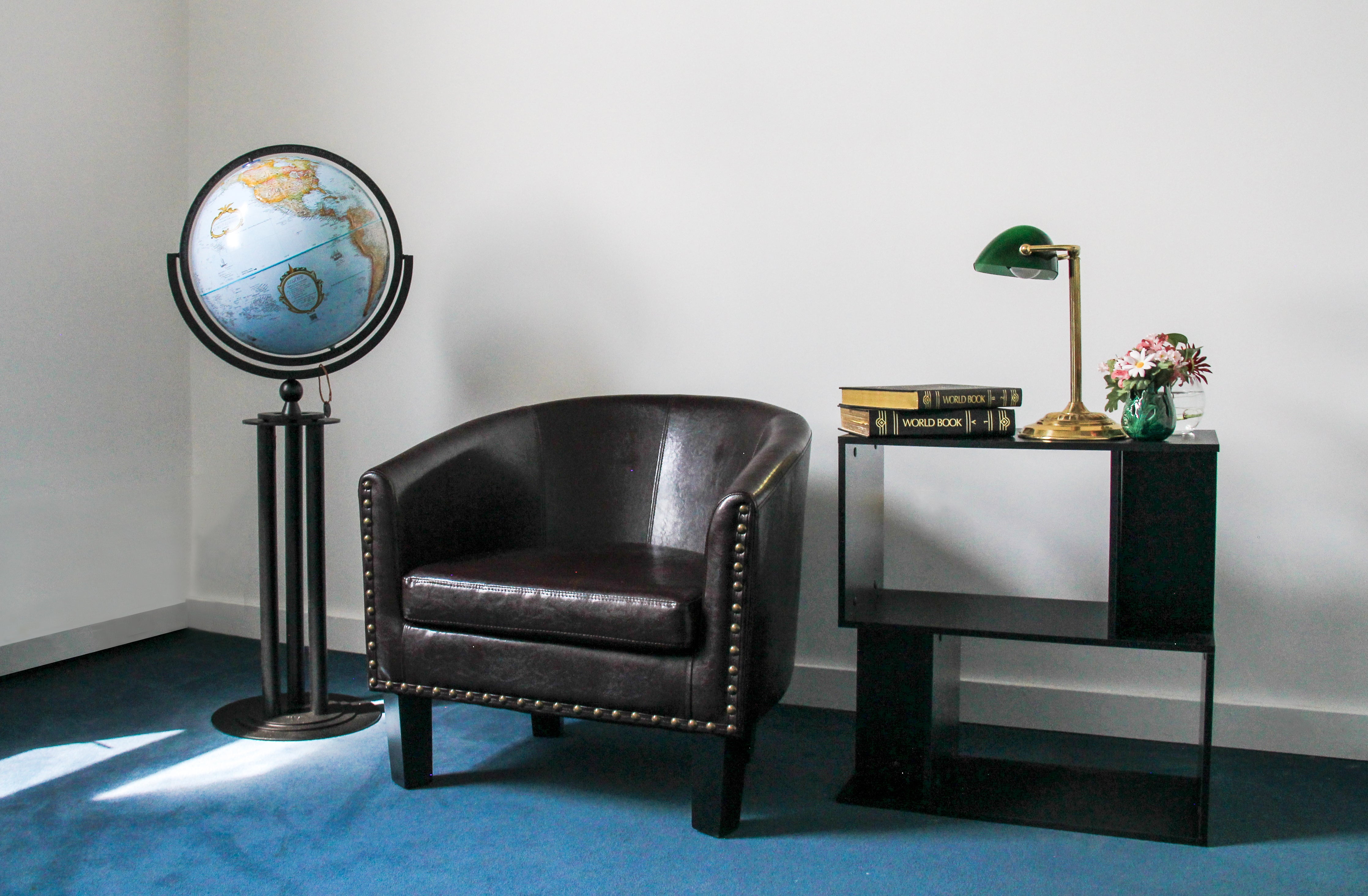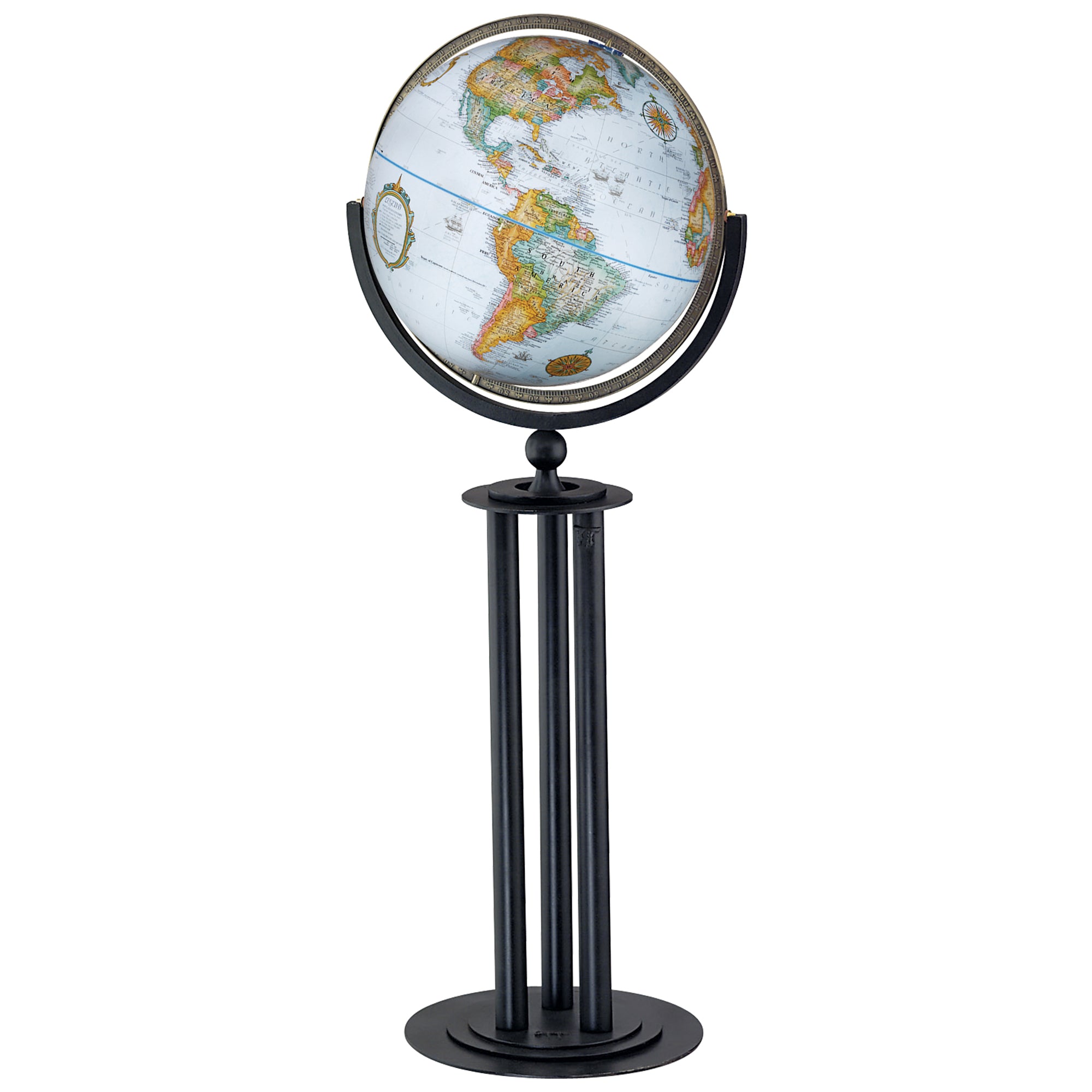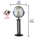 Florence 16" Diameter Globe, USA Cartography with Raised Mountain Relief and Sturdy Metal Stand. Since ancient times, the column has stood as a functional and decorative standard. This all-metal globe base is reminiscent of that form, yet crafted to reflect modern design. History, architecture, and culture come together in a unique way with this 16" blue ocean globe.