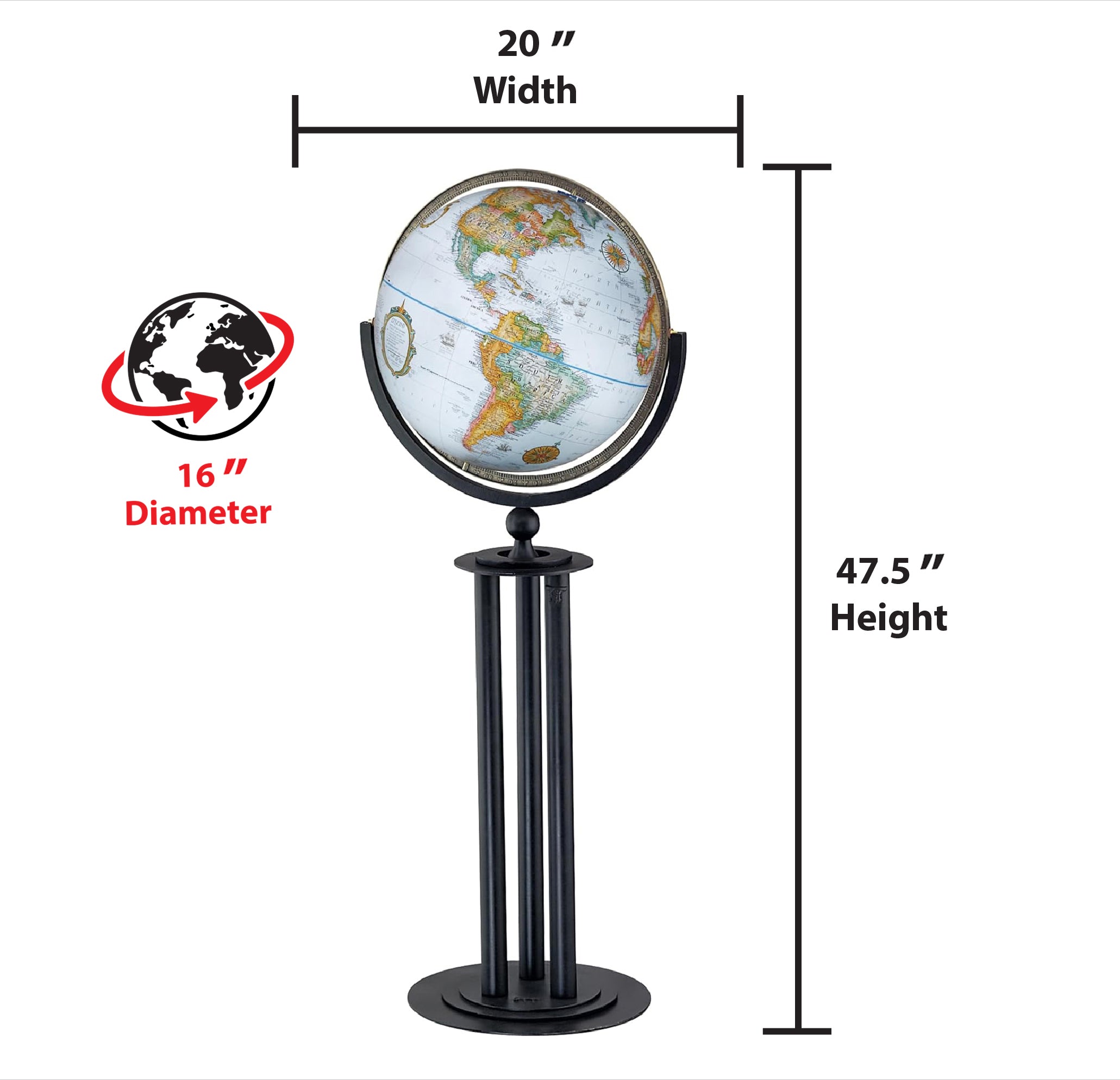 - Globe height is over 47.5"