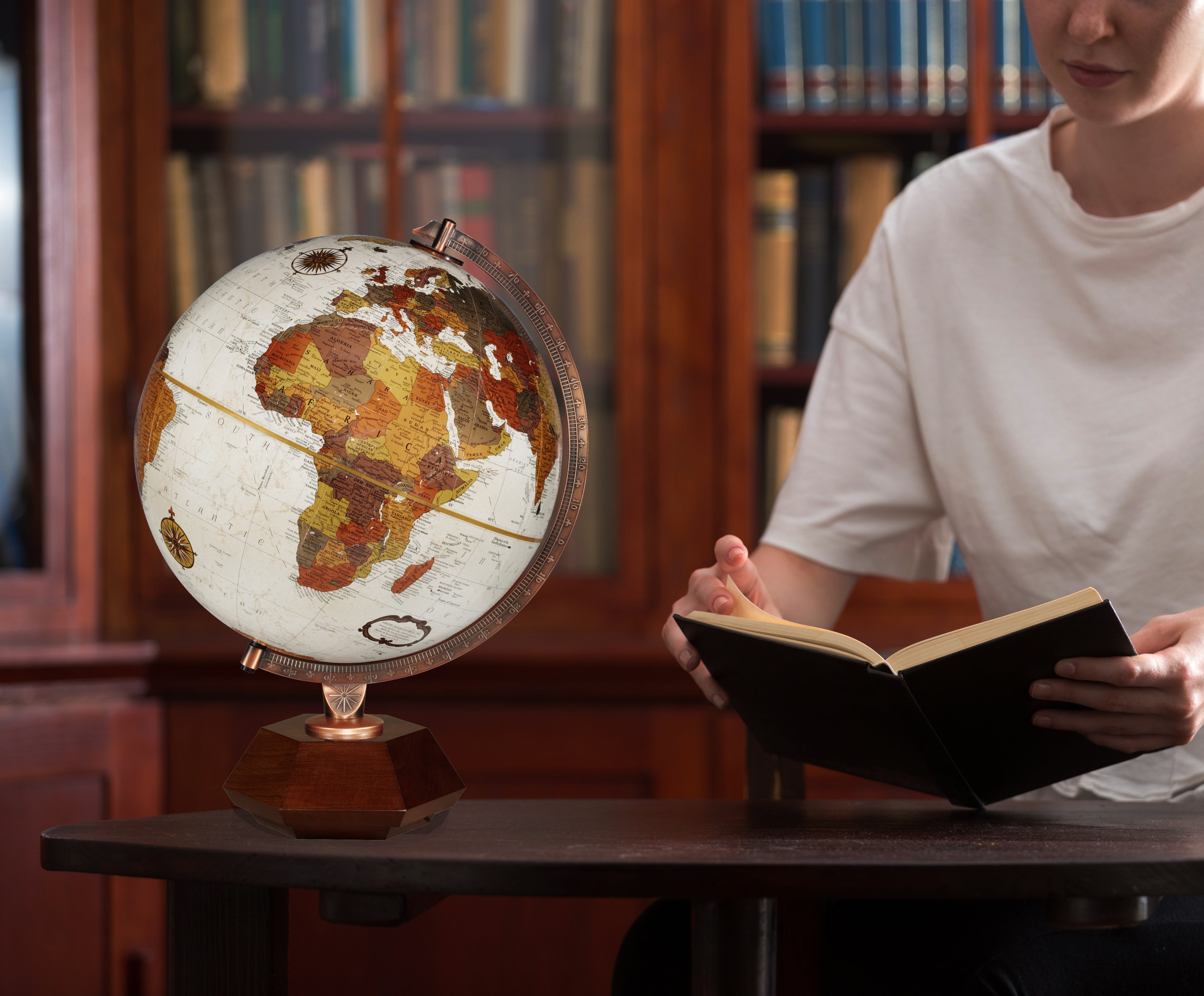- Stained Hardwood Base with Copper-plated Semi-Meridian