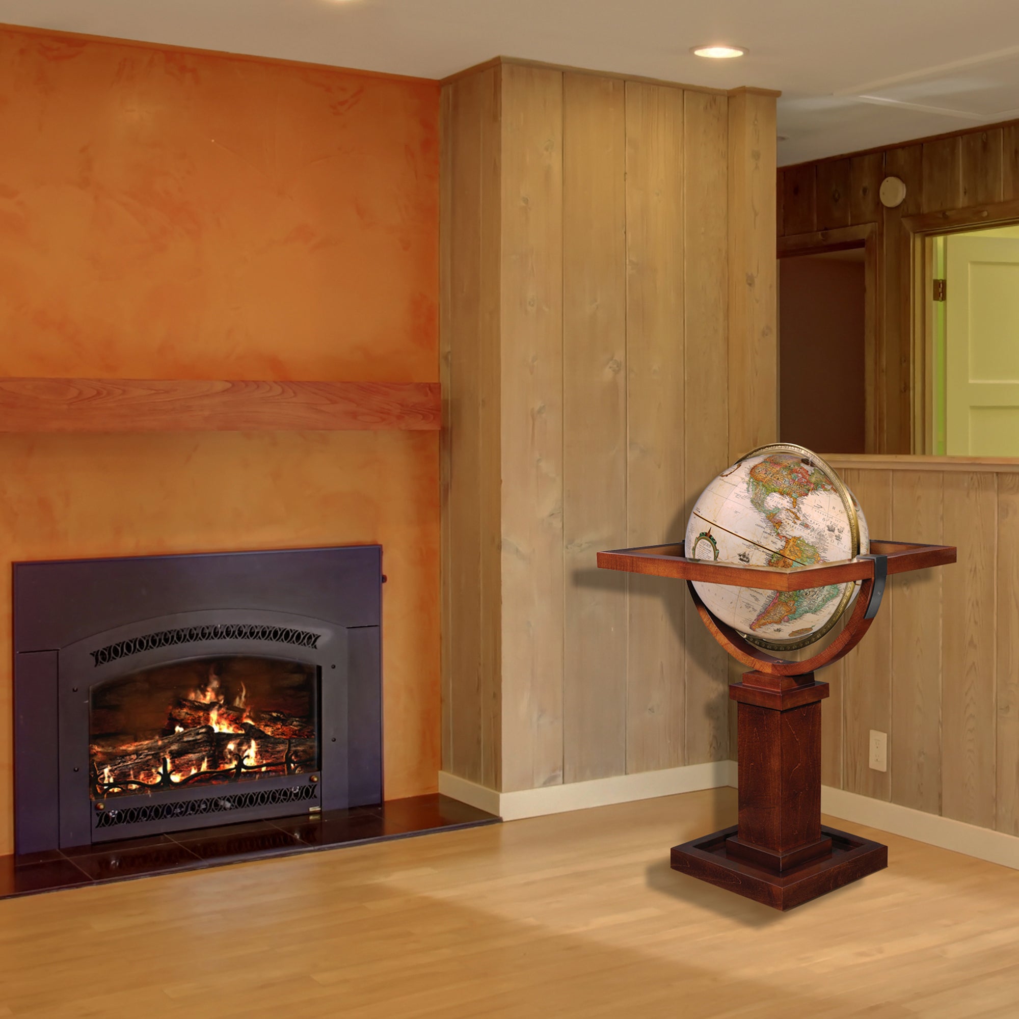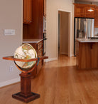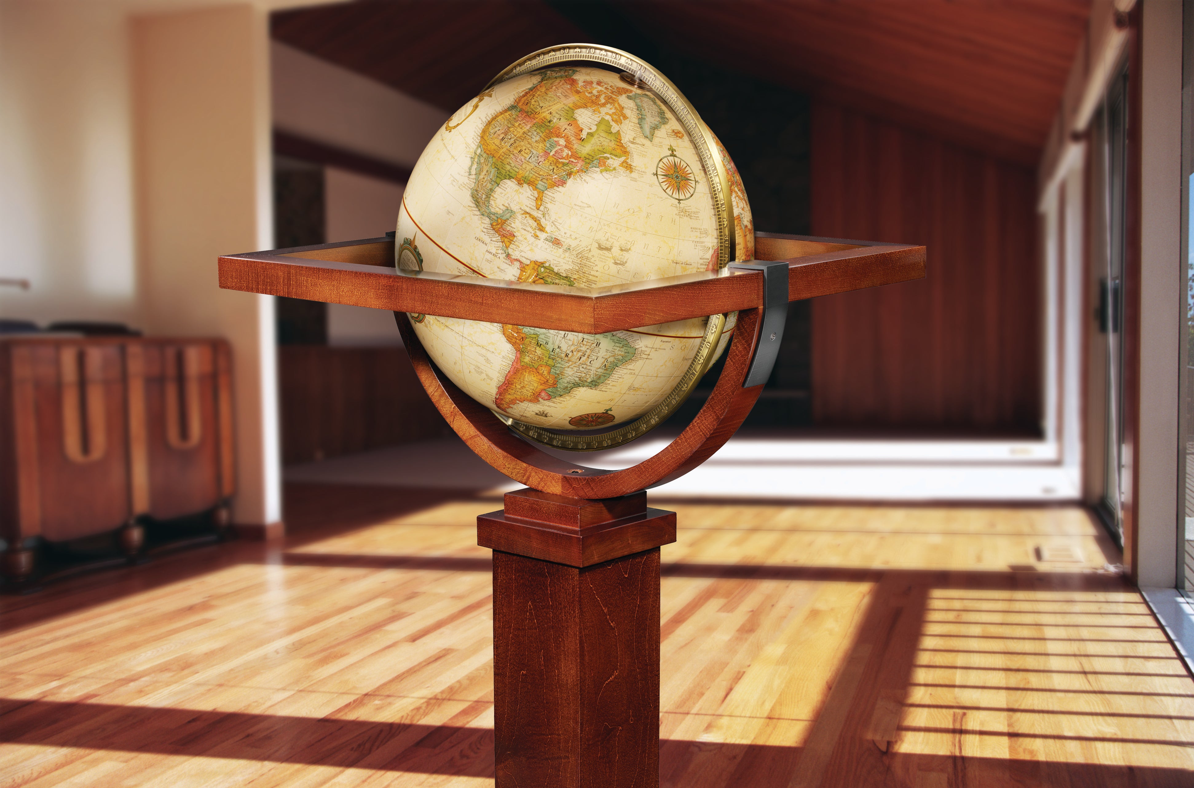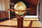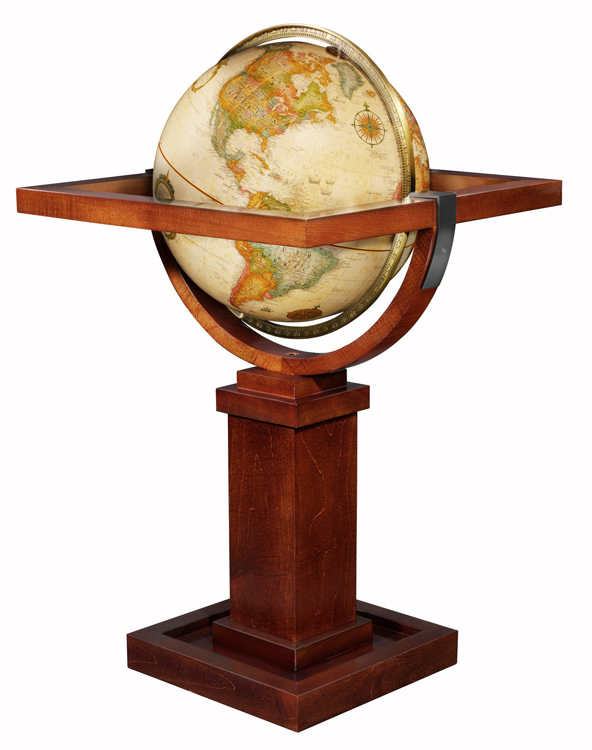 This globe stand is an authentic reproduction from a drawing found in the Frank Lloyd Wright Foundation archives. It is an unidentified concept for one of the Prairie Homes that Wright designed in the early 1900’s. The only marking on the drawing is in his handwriting and says, “Something like this.” The proportions, and interpretation, of the drawing were calculated based on the scale of other drawings from this time period. The solid hardwood stand for the Wright globe is hand made in Replogle’s custom woodshop.