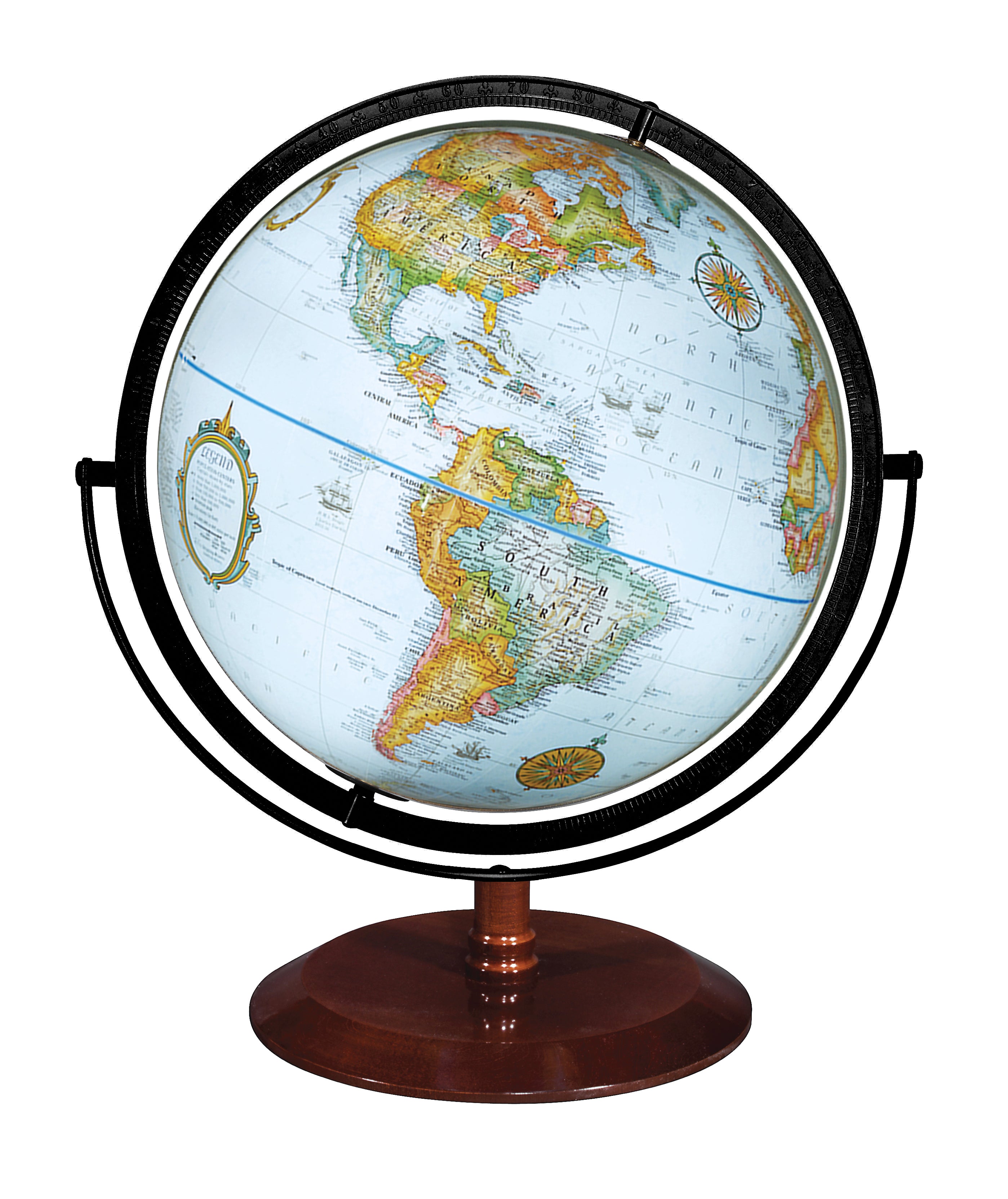 The Nassau 16 inch Diameter Blue Ocean World Globe features up to date information with over 4500 place names and boundary markers. The globe ball includes three dimensional raised relief highlighting the major mountain ranges of the world and is held in place by a full numbered meridian allowing 360 degree viewing.