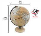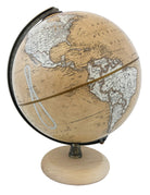 Bowden 9" Diameter Globe, USA Cartography with Mountain Relief, Black Hard Wood Natural Base and Antique Designer Ocean Globe Ball. The Bowden Designer Globe combines the stylings of the classic antique ocean globe with clean white land masses. It includes a classic dark brown outline to show the borders of all the countries of the world. This striking 9” diameter globe is held by a die-cast semi-meridian and classic natural grain round base. This environmentally conscience globe is made of reclaimed paper fiber and uses no lacquer or chemicals on the natural hard wood base.