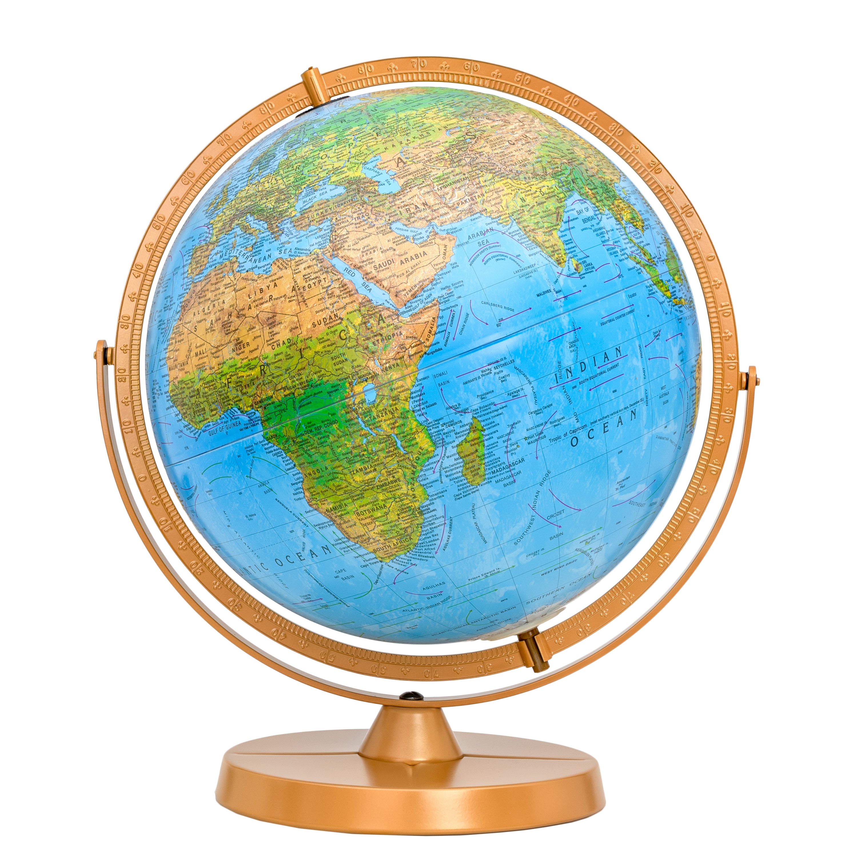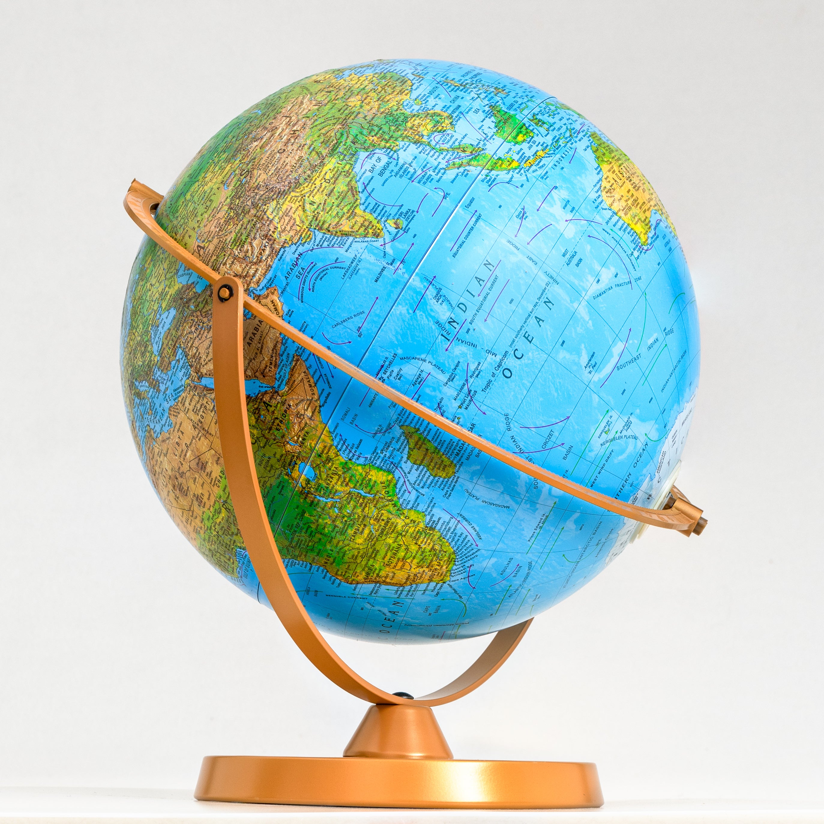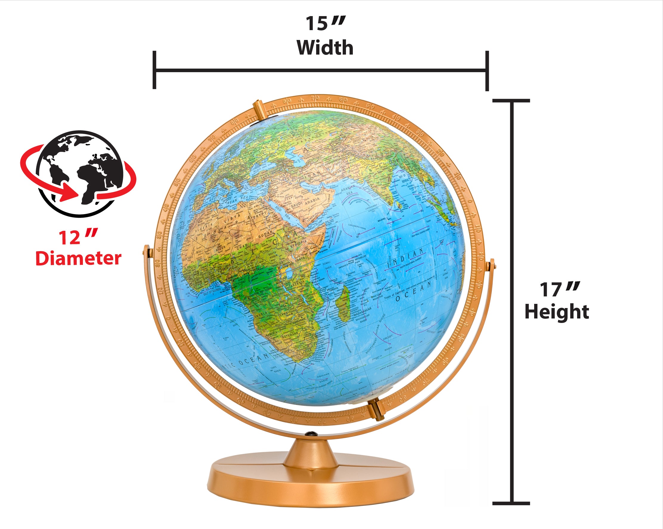 - 12-inch diameter world globe ideal for desktops
